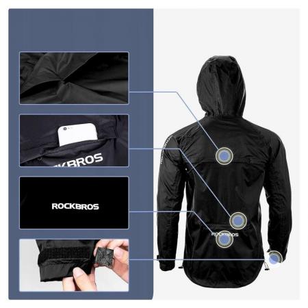 Το αδιάβροχο μπουφάν Rockbros είναι κατασκευασμένο από ελαφρύ, διαπνέον νάιλον με αερισμό στην πλάτη για την αποφυγή υπερθέρμανσης κατά τη διάρκεια δραστηριοτήτων υψηλής έντασης. Διαθέτει αντιανεμική προστασία, με σφραγισμένες ραφές και αδιάβροχη πλαστικοποίηση για την προστασία από τη βροχή. Η ρυθμιζόμενη κουκούλα με εκτεταμένο γείσο, οι αδιάβροχες μανσέτες και οι ανακλαστικές λεπτομέρειες εξασφαλίζουν προστασία και ορατότητα. Οι τσέπες με φερμουάρ ασφαλίζουν τα απαραίτητα αντικείμενα, ενώ ο αεροδυναμικός σχεδιασμός το καθιστά ιδανικό για διανομείς, για ποδηλασία, πεζοπορία ή τρέξιμο σε δύσκολες καιρικές συνθήκες.