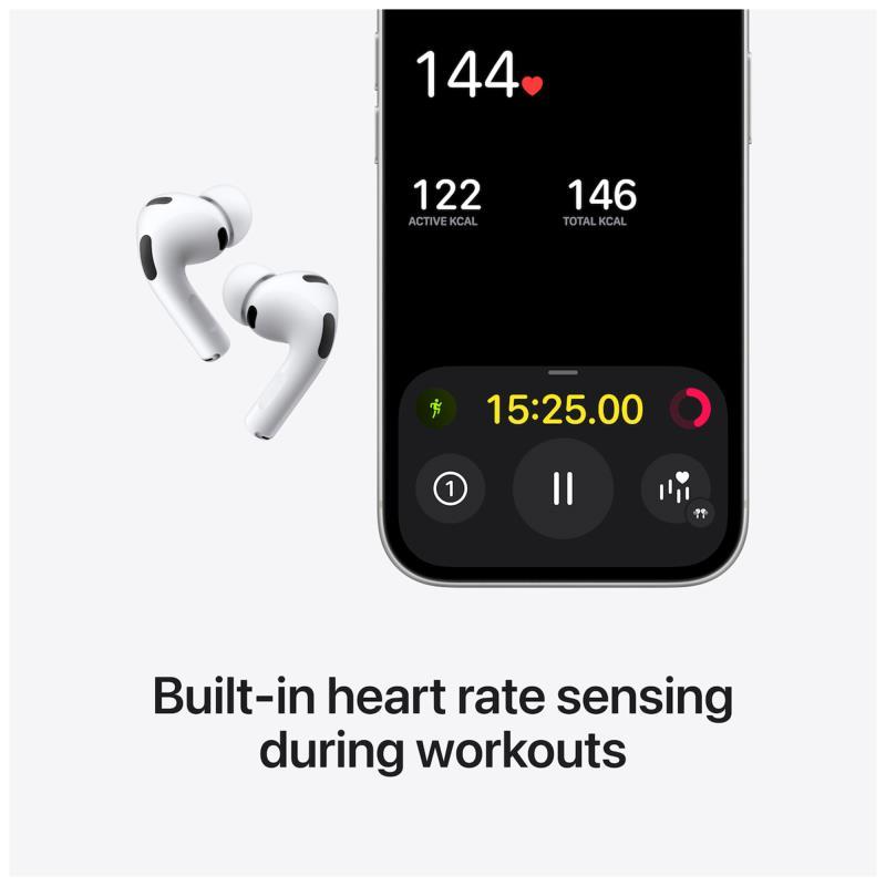 Τα AirPods Pro 3 προσφέρουν κορυφαία εμπειρία ήχου με βελτιωμένη ενεργή ακύρωση θορύβου (ANC), έως και 2 φορές ισχυρότερη από την προηγούμενη γενιά. Παρέχουν ακρόαση υψηλής ευκρίνειας, προσαρμοστικό ήχο, ανίχνευση συνομιλίας και λειτουργία διαφάνειας με ενίσχυση για καθαρότερες συνομιλίες. Υποστηρίζουν αισθητήρα καρδιακών παλμών για παρακολούθηση προπονήσεων, πέντε μεγέθη άκρων για σταθερή εφαρμογή και ανθεκτικότητα σε σκόνη/νερό IP57. Προσφέρουν έως 8 ώρες ακρόασης με ANC και έως 24 ώρες συνολικά με τη θήκη φόρτισης MagSafe (USB C). H θήκη έχει ενσωματωμένο ηχείο για εύρεση μέσω του Find My και φορτίζει μέσω USB C, MagSafe ή Qi.