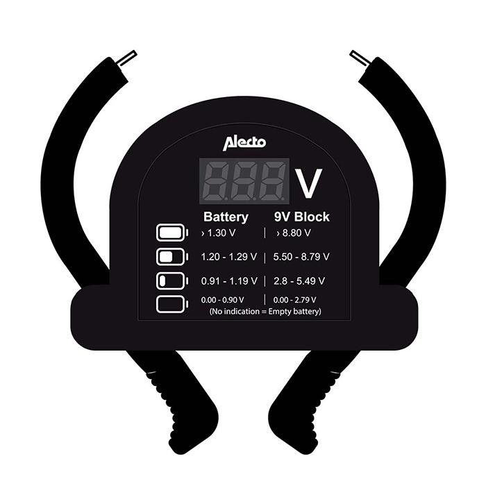 Universal ψηφιακό tester μπαταριών.Το Alecto BTT2 είναι ένα πρακτικό tester μπαταριών που σας επιτρέπει να ελέγχετε άμεσα την κατάσταση των μπαταριών, όπως AA, AAA, C, D και 9V. Η ψηφιακή οθόνη εμφανίζει με σαφήνεια την κατάσταση φόρτισής τους σε τέσσερα επίπεδα, δίνοντάς σας ακριβείς πληροφορίες με μια ματιά. Οι θήκες του είναι ευέλικτες, προσαρμόζονται στα περισσότερα μεγέθη μπαταριών και κάνουν την τοποθέτηση εύκολη και ασφαλή – για τις μπαταρίες 9V υπάρχει ειδική θέση στο κάτω μέρος της συσκευής. Εύχρηστο, αξιόπιστο και απαραίτητο για κάθε σπίτι, το Alecto BTT2 σας βοηθά να κρατάτε τις μπαταρίες σας πάντα έτοιμες για χρήση.Χαρακτηριστικά:- Ιδανικό για έλεγχο μπαταριών τύπου: AAA, AA, C, D, 9V Block- Συμπαγές μέγεθος, για εύκολη μεταφορά και αποθήκευση- Υψηλή ανθεκτικότητα- Διαθέτει ψηφιακή οθόνη, προσφέροντας ακριβή ένδειξη της κατάστασης φόρτισης της μπαταρίας- Εργονομικές και πτυσσόμενες λαβίδες μέτρησης, για εύκολη και αξιόπιστη μέτρηση- Υλικό: Πλαστικό- Χρώμα: Μαύρο