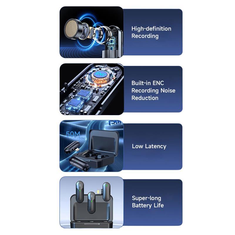 Τα ασύρματα μικρόφωνα Kintone Series 2 σε 1 της Devia επιτρέπουν καταγραφή ήχου υψηλής ευκρίνειας χάρη στην ενσωματωμένη τεχνολογία μειωμένου θορύβου ENC. Με χρόνο απόκρισης 15mS εξασφαλίζουν τέλειο συγχρονισμό εικόνας και ήχου για τις βιντεοκλήσεις σας. Η μπαταρία μεγάλης διάρκειας επιτρέπει έως και 8 ώρες συνεχούς λειτουργίας με μία φόρτιση και μέχρι 32 ώρες με την βάση φόρτισης.
