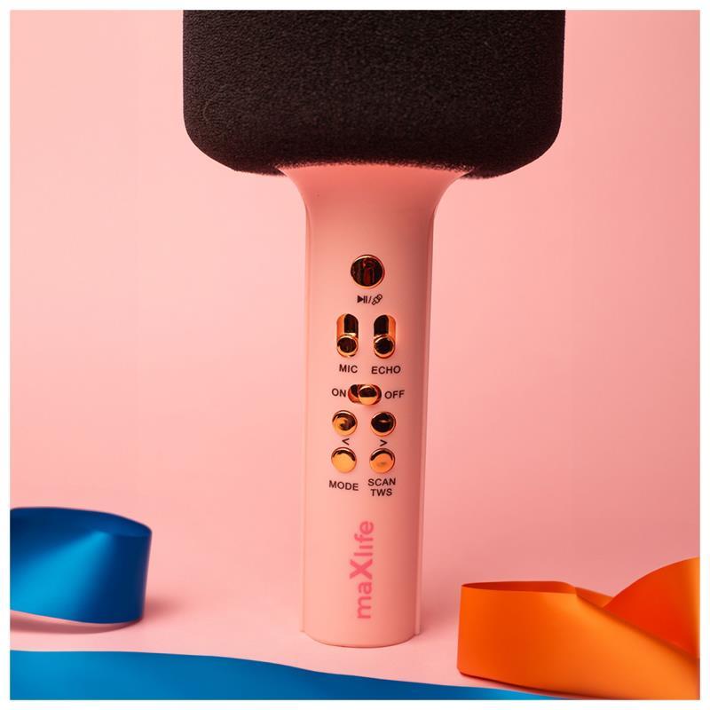 Το μικρόφωνο Bluetooth MXBM-600 με ηχείο θα σας επιτρέψει να ακούτε μουσική και να τραγουδάτε ταυτόχρονα. Είναι ελαφρύ και κομψό για να το έχετε μαζί σας όπου και αν πάτε. Η μπαταρία 1200 mAh εγγυάται τη λειτουργία του μικροφώνου για έως και 8 ώρες. Η ισχύς του μεγαφώνου είναι 5W. Το μικρόφωνο έχει ενσωματωμένα κουμπιά για έλεγχο έντασης.