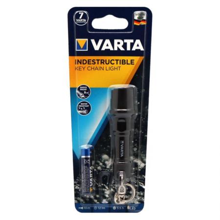 Άθραυστος & Αδιάβροχος Φακός Varta Indestructible Led Key Chain Light δοκιμασμένος σε πτώση από 9m. Λειτουργεί με 1 μπαταρία τύπου AAA που περιλαμβάνεται στη συσκευασία. 12 Lumens – 5m ακτίνα – Led 5mm