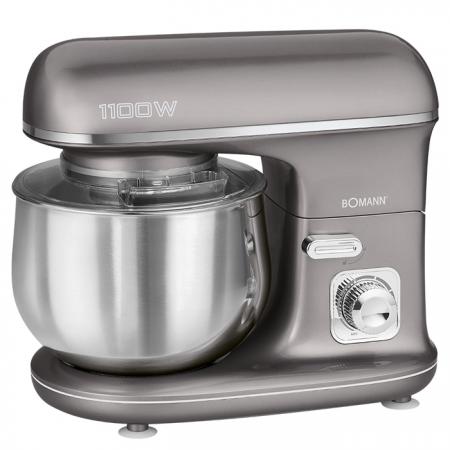 Κουζινομηχανή σε ανθρακί χρώμα, 1100W.- Κουζινομηχανή υψηλής ποιότητας κατασκευής και μεγάλης απόδοσης, με ισχυρό μοτέρ 1100W- Μεγάλος κάδος μείξης από ανοξείδωτο ατσάλι 5L, κατάλληλος για μείγμα έως 2,5-3kg- Αποσπώμενο διαφανές καπάκι για τον κάδο, που προστατεύει από πιτσιλιές και διαρροές- Διαθέτει τρεις γάντζους- εξαρτήματα :1. Γάντζος ανάμειξης από αλουμίνιο, για ομοιόμορφη ανάμιξη και μεγαλύτερης ποσότητας μείγματος2. Γάντζος ζυμώματος από αλουμίνιο, για ομοιόμορφη ανάμιξη και βαριάς ζύμης π.χ. μείγμα για ψωμί3. Αυγοδάρτης από ανοξείδωτο ατσάλι, για ελαφρύ μίγμα όπως παντεσπάνι και αφράτη μαρέγκα- Διαθέτει διακόπτη ταχυτήτων (min /max)- Διατηρεί σταθερή ταχύτητα ανάμειξης, ακόμη και με βαριά ζύμη ή μεγάλη ποσότητα, εξασφαλίζοντας πάντα γρήγορα και τέλεια αποτελέσματα- O βραχίονας σηκώνεται 35° για εύκολη αφαίρεση του κάδου ανάμειξης ή αλλαγή των εξαρτημάτων- Μηχανισμός απασφάλισης του πολύ-λειτουργικού βραχίονα- Ιδιαίτερα εύκολη στον καθαρισμό και στη χρήση- Εξαιρετική σταθερότητα βάσης, χάρη στα αντιολισθητικά ποδαράκια που διαθέτει- Ασφάλεια κυκλώματος- Xρώμα: Ανθρακί- Τροφοδοσία: 220-240V, 50Hz- Ισχύς: 1100W