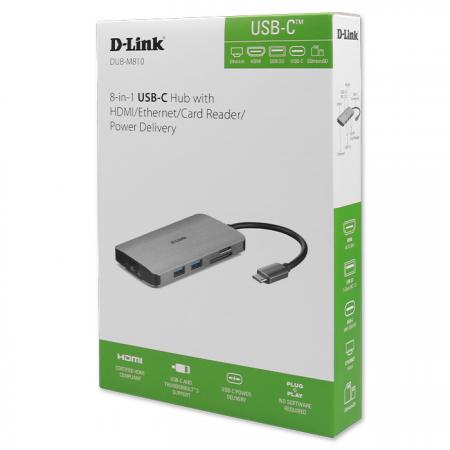 Σταθμός σύνδεσης 8 θυρών, με υποστήριξη οθόνης ανάλυσης ως 4Κ και με πολλαπλές λειτουργίες για laptop και PC, από μία μόνο σύνδεση SuperSpeed USB 3.0 Type-C.Το 8 σε 1 Hub DUB-M810, σας επιτρέπει να προσθέσετε άμεσα στο laptop σας μια δεύτερη οθόνη, τρεις πρόσθετες θύρες USB 3.0 και ένα card reader για κάρτες μνήμης SD & microSD. Απλά συνδέστε το σε μια διαθέσιμη θύρα USB Type-C και είστε έτοιμοι να επεκτείνετε το περιεχόμενο της οθόνης σας στην τηλεόραση ή σε μια άλλη οθόνη υψηλής ανάλυσης με την αξιοπιστία μιας ενσύρματης σύνδεσης βίντεο.Συνδεθείτε παντού, χρησιμοποιώντας μόνο μια θύρα.Προσθέστε άμεσα μια δεύτερη οθόνη, μια συσκευή ανάγνωσης καρτών SD και microSD, μια θύρα Gigabit Ethernet, τρεις USB 3.0 θύρες με μία από αυτές να υποστηρίζει γρήγορη φόρτιση καθώς και μια θύρα USB-C, απλά συνδέοντας το hub σε οποιοδήποτε θύρα USB type C του laptop σας.Συνδέστε έναν αξιόπιστο σταθμό σύνδεσης. Αποσυνδέστε για άμεση απομακρυσμένη εργασία.Απολαύστε μια εξαιρετική εμπειρία σταθμού σύνδεσης, απλά συνδέοντας το hub σε μία θύρα USB-C του υπολογιστή σας. Μπορείτε να αποκτήσετε απευθείας πρόσβαση σε ένα ιδιωτικό δίκτυο LAN με ταχύτητες Gigabit Ethernet, να επεκτείνετε την οθόνη σας σε μια δεύτερη οθόνη, να μεταφέρετε αρχεία από κάρτες SD και συσκευές USB 3.0 και να φορτίσετε το laptop σας, όλα ταυτόχρονα. Θέλετε να εργαστείτε εξ αποστάσεως, Απλώς αποσυνδέστε το καλώδιο του hub και είστε έτοιμοι να φύγετε με τον φορητό υπολογιστή σας.Έτοιμοι να μεταφέρετε ότι χρειάζεστε.Μεταφέρετε αξιόπιστα μαζικά αρχεία από την κάρτα SD ή microSD στον υπολογιστή σας χρησιμοποιώντας την ενσωματωμένη συσκευή ανάγνωσης καρτών SD / microSD. Ιδανικό για γρήγορη λήψη φωτογραφιών και βίντεο σε κινητό τηλέφωνο, tablet ή υπολογιστή, χωρίς να καταναλώνετε τις μπαταρίες της κάμερας.Επεκτείνετε την εικόνα σας σε μια "ζωντανή" οθόνη 4K.Συνδέστε τη θύρα HDMI του hub για να αντικατοπτρίσετε άμεσα ή να επεκτείνετε την οθόνη σας σε μια δεύτερη οθόνη με ανάλυση 4K. Επίσης, υπάρχει πλήρης συμβατότητα σε οθόνες 720p ή 1080p.Τροφοδοτήστε άλλες συσκευές μέσω του hub.Με τη λειτουργία Power Delivery, μπορείτε παράλληλα να φορτίσετε το φορητό υπολογιστή σας και ταυτόχρονα να είστε συνδεδεμένος με άλλες περιφερειακές συσκευές USB. Απλώς συνδέστε το φορτιστή USB-C στη θύρα USB-C του hub για παροχή ενέργειας μέσω του hub και του φορητού υπολογιστή σας.- Συνδέστε μια δεύτερη οθόνη στη θύρα 4K HDMI για ανάλυση βίντεο έως 4K εύκολα και γρήγορα.- USB 3.0 SuperSpeeds: Μεταφορά δεδομένων στα 5Gbps. Ιδανικό για μεταφορά αρχείων από USB sticks, τηλέφωνα, tablet, κάμερες και άλλες περιφερειακές συσκευές.- Περισσότερες Plug and Play USB-C θύρες: Προσθέστε περισσότερες διαθέσιμες θύρες στον υπολογιστή, απλώς συνδέοντας το hub σε μια θύρα USB-C. Δεν απαιτείται εγκατάσταση επιπρόσθετου λογισμικού.- Thunderbolt 3: Χρησιμοποιήστε τη θύρα Thunderbolt 3 για μεταφορά δεδομένων, παροχή ισχύος ή επέκταση της οθόνης σας, μέσα σε δευτερόλεπτα.- USB-C θύρα με Power Delivery 100W: Παρέχετε ισχύς έως και 100W μέσω του hub στον φορητό υπολογιστή σας, συνδέοντας το φορτιστή USB-C στη θύρα USB-C.- Dual_Slot SD Card Reader: Συνδέστε άμεσα κάρτες SD / microSD / SDHC / SDXC στο hub και πραγματοποιήστε γρήγορες μεταφορές δεδομένων, φωτογραφιών και βίντεο.- Quick Charge: Φορτίστε τις συσκευές USB πιο γρήγορα χρησιμοποιώντας την πιο πρόσφατη τεχνολογία USB 3.0.- Στιβαρός και ελαφρύς σχεδιασμός σε γκρι χρώμα, με περίβλημα από κράμα αλουμινίου.Τεχνικές προδιαγραφέςΓενικά:- Σχεδιασμένο για να καλύπτει τις επιπλέον απαιτήσεις συνδεσιμότητας του laptop- Από 1 θύρ