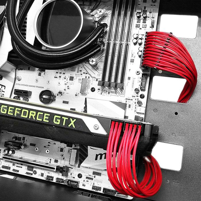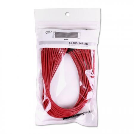 Braided καλώδιο προέκτασης τροφοδοσίας motherboard 24pin, 30cm σε κόκκινο χρώμα.Με την σειρά των braided καλωδίων προεκτάσης τροφοδοσίας της Deepcool, αναβαθμίζετε εύκολα την συνολική εμφάνιση του εσωτερικού του PC σας, δίνοντάς του ένα clean look, ενώ ταυτόχρονα επιτυγχάνετε ένα άριστο cable management και καλύτερη ροή αέρα στο εσωτερικό του υπολογιστή σας- Καλώδιο προέκτασης 24pin 18AWG, μήκους 30cm και connectors υψηλής ποιότητας- Χρώμα: Κόκκινο
