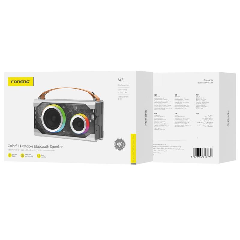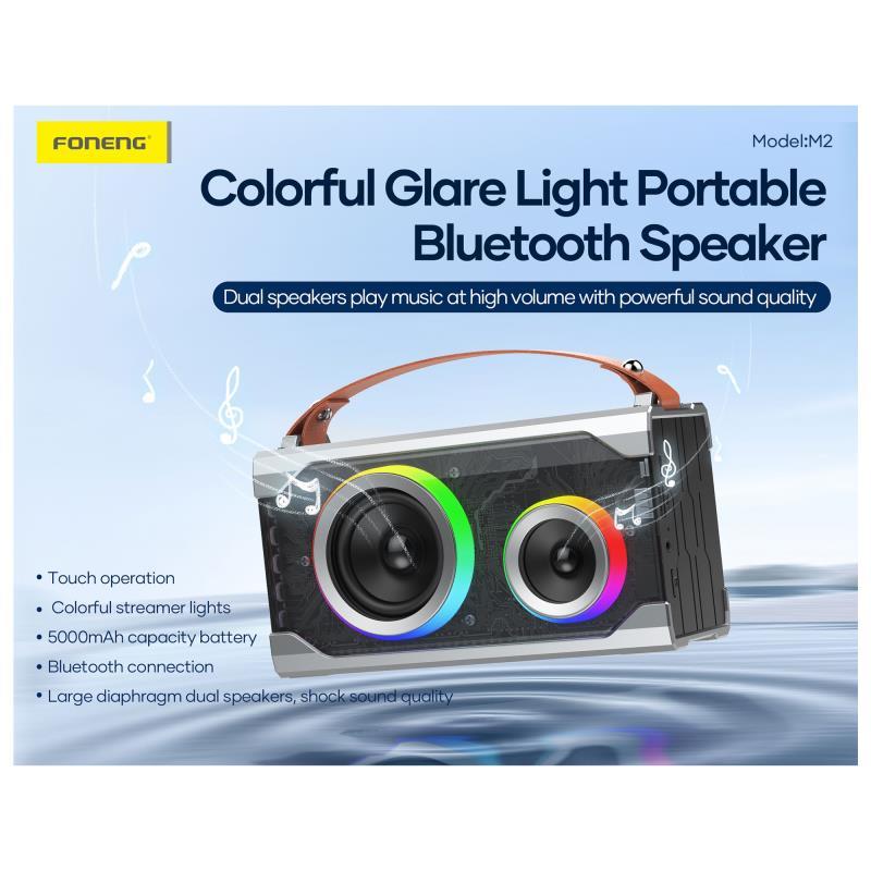 Το φορητό ηχείο Bluetooth Foneng M2 Colorful συνδυάζει δυναμικό ήχο, σύγχρονη τεχνολογία και εντυπωσιακό σχεδιασμό, αποτελώντας ιδανική επιλογή για μουσική. Προσφέρει σταθερή και γρήγορη ασύρματη σύνδεση με τις συσκευές σας, εξασφαλίζοντας άνετη και απρόσκοπτη αναπαραγωγή. Διαθέτει ισχύ 15W, προσφέροντας καθαρό και γεμάτο ήχο. Η μπαταρία με χωρητικότητα 5000mAh προσφέρει μεγάλη διάρκεια λειτουργίας, επιτρέποντάς σας να απολαμβάνετε τη μουσική σας έως 13 ώρες χωρίς διακοπές. Η φορητή κατασκευή το καθιστά εύκολο στη μεταφορά και κατάλληλο για καθημερινή χρήση ενώ ο πολύχρωμος φωτισμός του κερδίζει τις εντυπώσεις.