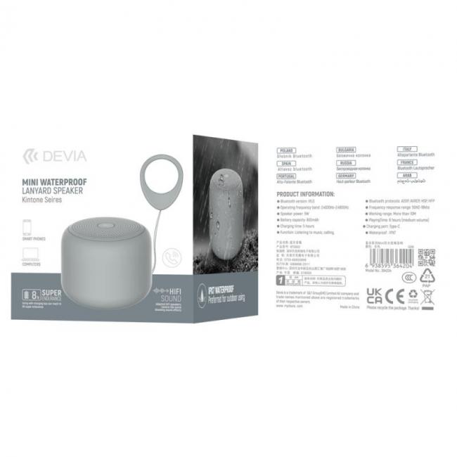 Το αδιάβροχο ηχείο Bluetooth Kintone Series Mini της Devia υπόσχεται να σας προσφέρει μια όμορφη εμπειρία μουσικής μέσα από τον HiFi ήχο που διαθέτει, για να απολαμβάνετε τη μουσική σας οπουδήποτε χωρίς περιορισμούς, χάρη στην μακράς διάρκειας ζωής της μπαταρίας του, που διαρκεί έως και 8 ώρες αδιάκοπης μουσικής. Χαρακτηριστικά: