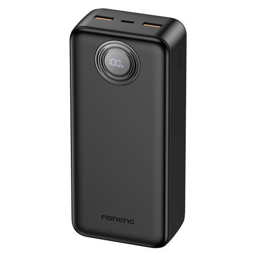 Το Foneng PX103 είναι ένα power bank 30000 mAh με γρήγορη φόρτιση 22.5W σε τρεις θύρες εξόδου. Η είσοδος USB C υποστηρίζει 5V/3A και 9V/2A, ενώ οι έξοδοι περιλαμβάνουν μια θύρα USB C (PD) και δύο θύρες USB A με συνδυασμένη γρήγορη έξοδο. Έχει διαστάσεις περίπου 145x70x50mm και ζυγίζει περίπου 600g. Διαθέτει οθόνη LCD για την κατάσταση της μπαταρίας και είναι πιστοποιημένο σύμφωνα με το πρότυπο ασφαλείας 3C.