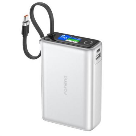 Το Foneng PX132 είναι ένα power bank 20000 mAh σχεδιασμένο για αξιόπιστη γρήγορη φόρτιση έως 65W. Διαθέτει τρεις θύρες εξόδου (USB A, θύρα USB C, καλώδιο USB C) και υποστηρίζει είσοδο μέσω θύρας & καλωδίου USB C. Μια ενσωματωμένη οθόνη TFT δείχνει το υπόλοιπο ποσοστό της μπαταρίας καθώς και ενδείξεις για κάθε έξοδο. Με διαστάσεις περίπου 120.0x70.0x32.0 mm και βάρος περίπου 345g, είναι συμπαγές και εύκολο στη μεταφορά για την χωρητικότητά του.