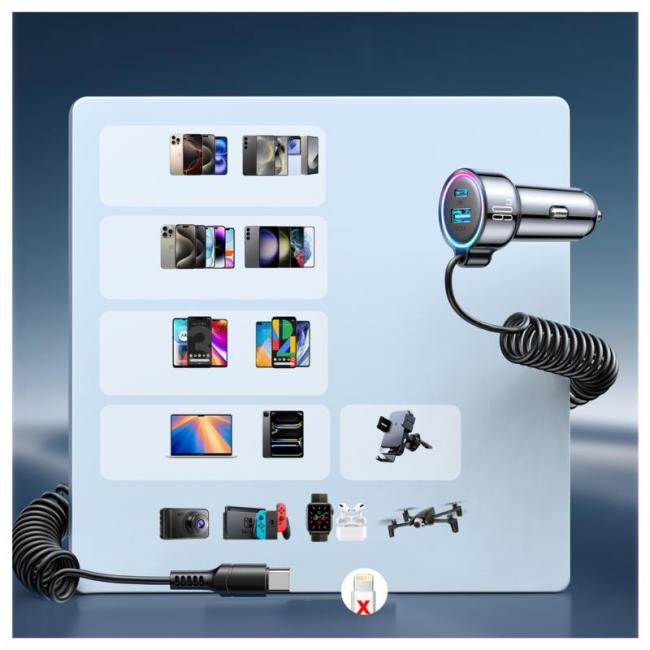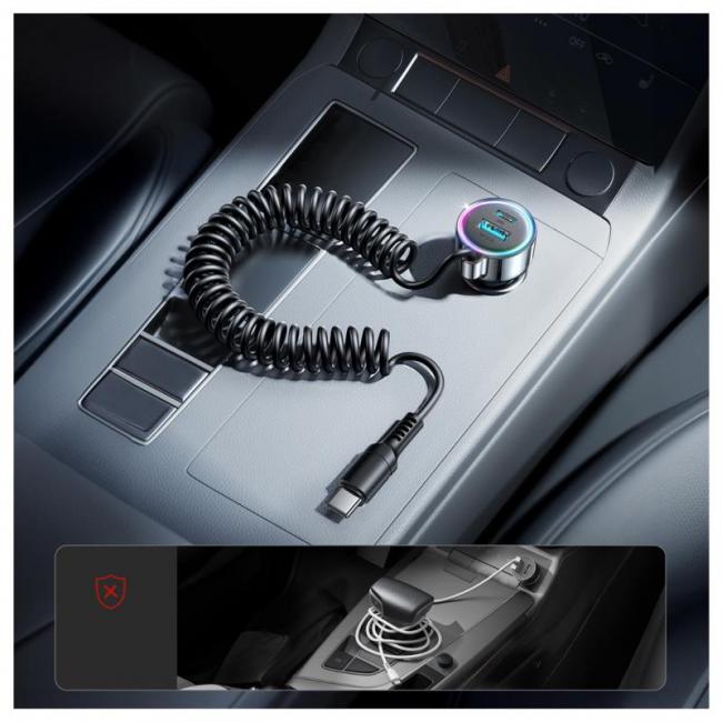 Ο Joyroom JR-CL07 είναι φορτιστής αυτοκινήτου 3-σε-1 με συνολική ισχύ 90W, σχεδιασμένος για γρήγορη και ασφαλή φόρτιση έως τριών συσκευών ταυτόχρονα. Υποστηρίζει ευρεία συμβατότητα με τα περισσότερα smartphones και tablets, προσφέροντας φόρτιση έως και 7 φορές ταχύτερη από συμβατικούς φορτιστές, ενώ μπορεί να φορτίσει AirPods Max από 0% σε 52% μέσα σε 1 ώρα. Διαθέτει επεκτεινόμενο καλώδιο 1.6 m με ελατήριο που παραμένει τακτοποιημένο και δεν μπερδεύεται, καθώς και 7-χρωμο ambient LED φωτισμό για εύκολη χρήση στο σκοτάδι. Παραμένει δροσερός κατά τη λειτουργία και ενσωματώνει 6 συστήματα προστασίας (όπως υπερέντασης και υπέρτασης) για αξιόπιστη ασφάλεια. Είναι κατασκευασμένος από PC Fuel V.0 Grade, με διαστάσεις 62.7 × 34.5 × 29.4 mm και βάρος 56 g.
