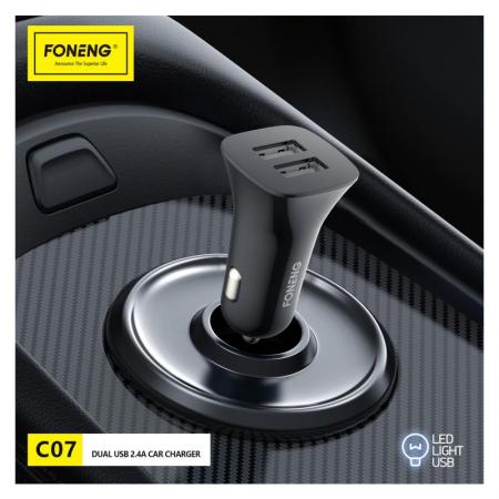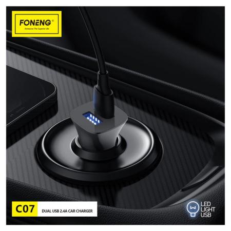Ο φορτιστής αυτοκινήτου Foneng C07 Dual-USB 2.4 A, είναι μια πρακτική λύση φόρτισης εν κινήσει. Σχεδιασμένο με δύο θύρες USB A που παρέχουν έως 5V/2.4A η καθεμία, φορτίζει ταυτόχρονα smartphone, tablet, φωτογραφικές μηχανές και άλλα. Εξοπλισμένο με έξυπνο τσιπ, αναγνωρίζει με ευφυή τρόπο τις συνδεδεμένες συσκευές και βελτιστοποιεί την ταχύτητα φόρτισης, διατηρώντας παράλληλα σταθερή και ανθεκτική απόδοση. Το κομψό περίβλημα ABS προσφέρει μια εξαιρετική αίσθηση απαλής αφής σε μαύρο ή λευκό χρώμα και ταιριάζει σε πρίζες αυτοκινήτου ή φορτηγού 12-24V.