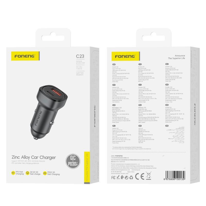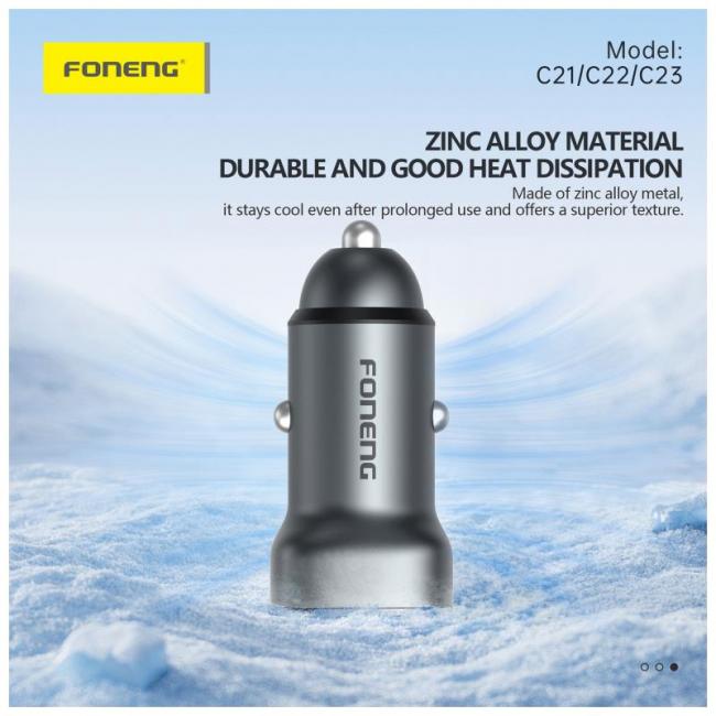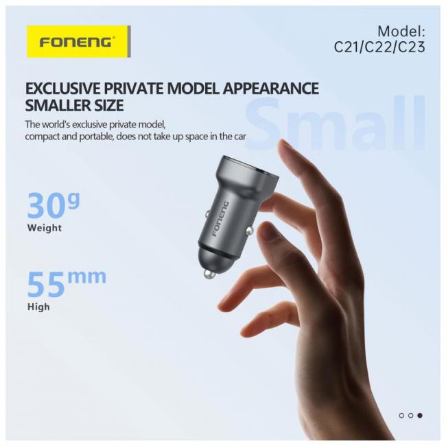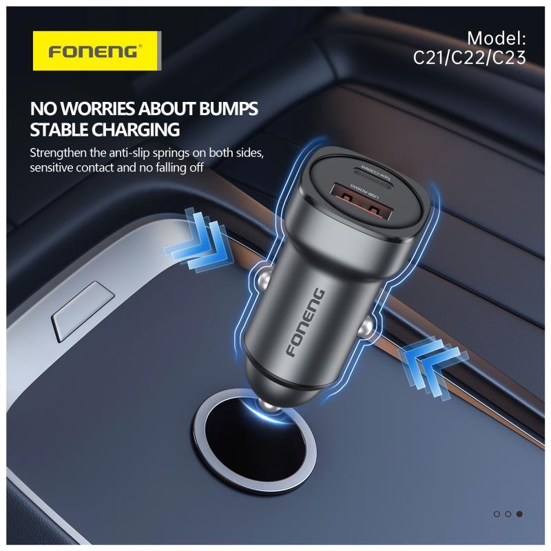 Ο φορτιστής αυτοκινήτου Foneng C23 είναι η ιδανική επιλογή για όσους θέλουν γρήγορη και ασφαλή φόρτιση σε κάθε διαδρομή. Με ισχύ 30W, σας προσφέρει αποδοτική φόρτιση για κινητά και άλλες συσκευές, μειώνοντας σημαντικά τον χρόνο αναμονής. Διαθέτει διπλή έξοδο USB A & USB C, επιτρέποντας ταυτόχρονα την φόρτιση δύο συσκευών. Το σύστημα προστασίας αποτρέπει την υπερφόρτιση και υπερθέρμανση, διασφαλίζοντας την μακροζωία των μπαταριών. Ο κομψός σχεδιασμός ολοκληρώνει ιδανικά το εσωτερικό κάθε αυτοκινήτου.
