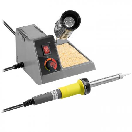 Αναλογικός σταθμός κόλλησης 48WΧαρακτηριστικά:- Μικρός χρόνος προθέρμανσης- Γρήγορη και εύκολη αλλαγή μύτης- Βάση για σφουγγάρι Τεχνικές προδιαγραφές:- Ισχύς: 48W- Συχνότητα: 50 Hz- Θερμοκρασία: 150-450 °C- Μύτη: 1.5mm (διάμετρος)
