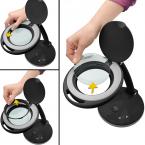 Επιτραπέζιος μεγεθυντικός φακός πάγκου εργασίας με ρυθμιζόμενη ένταση φωτεινότητας LED 450lm, 6W σε μαύρο χρώμα.O επιτραπέζιος μεγεθυντικός φακός της Goobay είναι η τέλεια λύση για χρήση σε εργασίες που χρειάζονται μεγάλη λεπτομέρεια.Διαθέτει φωτισμό LED κι έχει επίσης 3 διόπτρες μεγέθυνσης ακριβείας (1,75x) με γυάλινο φακό διαμέτρου 100mm. Ο μεγεθυντικός φακός φωτίζεται από 30 LED SMD με ένταση φωτός 450 lumen και θερμοκρασία χρώματος 6500K.Διαθέτει επίσης βραχίονα με ενσωματωμένο οδηγό καλωδίου, παρέχοντας μεγάλο εύρος εργασίας έως και 300mm καθώς και πλήκτρα αφής, για την σταδιακή αύξηση / μείωση της φωτεινότητας. Τέλος, στο πάνω μέρος διαθέτει καπάκι για τη σωστή προστασία του φακού καθώς και ένα διαφανές κάλυμμα λαμπτήρων, το οποίο θα εξασφαλίσει πολύ δυνατό και καθαρό φως.Χαρακτηριστικά:- Ανθεκτικά και χαμηλής κατανάλωσης ενέργειας SMD LEDs σε ψυχρό λευκό χρώμα- Ιδανικός για χρήση ως μεγεθυντικός φακός, φωτιστικό γραφείου, βοηθητική συσκευή ανάγνωσης ή για εργασίες ακριβείας όπως κέντημα, συγκόλληση, κ.α.- Γυάλινος φακός με 3 διόπτρες και μεγέθυνση 1.75x- Δυνατότητα οριζόντιας περιστροφής 90°, ώστε να μεγεθύνει το αντικείμενο από διάφορες γωνίες- Δυνατότητα κατακόρυφης κλίσης 75°, προσφέροντας εύκολο ζουμ για να παρατηρείτε οποιαδήποτε λεπτομέρεια- Δυνατότητα ρύθμισης της φωτεινότητας του μεγεθυντικού φακού μέσω των πλήκτρων αφής, που κυμαίνεται από 80lm έως 450lm σε 5 βήματα- Λυχνία μεγεθυντικού φακού με φωτισμό (διαμέτρου 100 mm), που δημιουργεί έναν φωτισμό δακτυλίου LED χωρίς σκιές, ισορροπημένο στο φως της ημέρας- Διαθέτει βραχίονα με ενσωματωμένο οδηγό καλωδίου παρέχοντας ευέλικτη ακτίνα εργασίας έως και 300mm- Διαφανές κάλυμμα λαμπτήρα, για δυνατό και καθαρό φωτισμό- Σταθερή βάση στήριξης από καουτσούκ, που εγγυάται ότι ο φακός δεν θα γλιστρήσει από τη θέση του- Διαθέτει προστατευτικό καπάκι, για την προστασία του φακού από τη σκόνη όταν δεν χρησιμοποιείται- Χάρη στη γρήγορη απελευθέρωση, μπορείτε εύκολα και χωρίς εργαλεία να αντικαταστήσετε τον γυάλινο φακό με 3 διόπτρες και μεγέθυνση 1,75x (συμπεριλαμβανομένου του προστατευτικού καπακιού)- Διόπτρες: 3- Μέγεθος φακού: 100 mm- Τύπος λαμπτήρα: LED- Φωτισμός: 30 SMD LEDs 6.0W- Φωτεινότητα: 450 lm- Θερμοκρασία χρώματος: 6500K- Ονομαστική διάρκεια ζωής: 25.000 ώρες- Χρώμα φωτός: Ψυχρό λευκό- Ενεργειακή κλάση: F- Πιστοποίηση IP20- Μεγέθυνση: 1.75x- Υλικό φακού: Γυαλί- Μήκος καλωδίου τροφοδοσίας: 1.30 m- Μέγιστη κατανάλωση ισχύος: 6 W- Γωνία δέσμης: 111°- Δείκτης απόδοσης χρωμάτων (Ra): 80- Τάση εισόδου: 220 - 240 VAC / 50-60 Hz- Υλικό: Πλαστικό- Χρώμα: Μαύρο- Συσκευασία: Κουτί