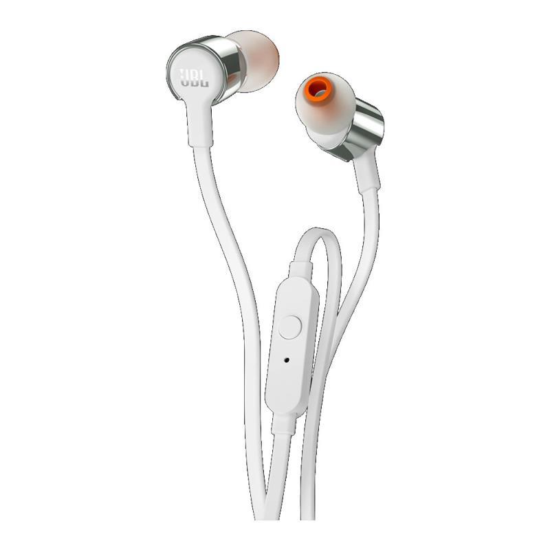 Τα In-Ear ακουστικά T210 της JBL είναι ελαφριά και άνετα. Κάτω από το μεταλλικό περίβλημα του ακουστικού, ένα ζευγάρι drivers 8.7mm αποδίδει δυνατό μπάσο, το καθαρό μπάσο της JBL που έχετε ακούσει σε αίθουσες συναυλιών, αρένες και στούντιο εγγραφής σε όλο τον κόσμο.
