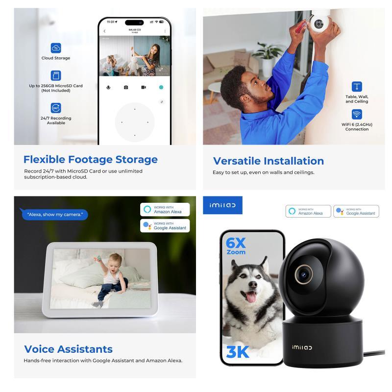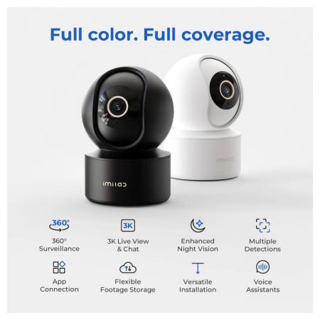 Διατηρήστε τον χώρο σας ασφαλή με την έξυπνη Wi Fi κάμερα IMILAB C22. Προσφέρει πλήρη κάλυψη του χώρου με 360° περιστροφή και 115° κλίση και ανάλυση 3K (2880×1620, 5 MP) για μεγάλη ευκρίνεια σε live εικόνα. Με ποιοτικό έγχρωμο νυχτερινό τρόπο (color night vision), πανοραμική θέα και 6x ψηφιακό ζουμ, μπορείτε να ελέγχετε τα πάντα — είναι και ιδανική ως κάμερα μόνιτορ για παιδικό δωμάτιο χάρη στις ζώνες ανίχνευσης και τις ειδοποιήσεις. Επιπλέον, η αμφίδρομη επικοινωνία σας επιτρέπει να μιλάτε σε πραγματικό χρόνο.