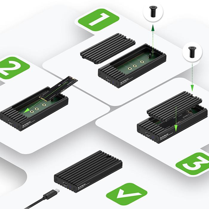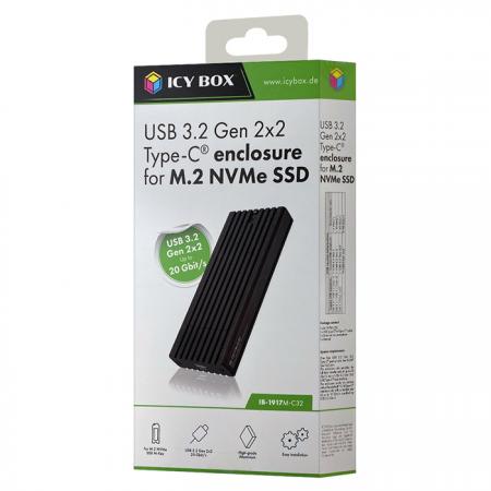 Εξωτερική θήκη αλουμινίου για σκληρούς δίσκους M.2 NVMe SSD, με σύνδεση USB 3.2 Gen 2x2 Type-C.Εξωτερική θήκη αλουμινίου με ειδικό σχεδιασμό ψήκτρας για άριστη απαγωγή θερμότητας, για σκληρούς δίσκους M.2 NVMe SSD. Επωφεληθείτε από τη μέγιστη απόδοση μέσω της θύρας USB 3.2 Gen 2x2 με εντυπωσιακούς ρυθμούς μεταφοράς δεδομένων έως και 20 Gbit/s, που αντιστοιχεί σε περίπου 2.5 GB/s. Χάρη στη σύγχρονη σύνδεση USB Type-C, οι εξαντλητικοί χρόνοι αναμονής για την αολοκλήρωση της μεταφοράς αρχείων, ανήκουν στο παρελθόν.Με υψηλούς ρυθμούς μεταφοράς δεδομένων και κορυφαία απόδοση M.2 NVMe SSD σε μεγέθη 22x 30/42/60 ή 80mm, επιταχύνετε άμεσα τη ροή της εργασίας σας. Απολαύστε απεριόριστη ταχύτητα μεταφοράς δεδομένων για δημιουργία αντιγράφων ασφαλείας, σημαντικά προγράμματα και αντιγραφή μέσων ή δεδομένων.Επίσης, η τοποθέτηση και αφαίρεση των σκληρών δίσκων πραγματοποιείται εύκολα και γρήγορα χωρίς τη χρήση επιπλέον εργαλείων, ενώ δεν απαιτείται η εγκατάσταση drivers ή πρόσθετο λογισμικό.Τέλος, η ενσωματωμένη λυχνία LED κατάστασης σας κρατά ενήμερους σχετικά με την τροφοδοσία και τη λειτουργία του δίσκου.Χαρακτηριστικά:- Εξωτερική θήκη αλουμινίου για SSD M.2 NVMe- Για M.2 NVMe SSD με M-Key, 22x30/42/60/80 mm- Εύκολη εγκατάσταση σκληρού δίσκου χωρίς εργαλεία- Υψηλής ποιότητας περίβλημα αλουμινίου με πρωτοποριακό σχεδιασμό ψύκτρας- Σύνδεση με υπολογιστή μέσω USB 3.2 Gen 2x2 Type-C, για ρυθμό μεταφοράς δεδομένων έως 20 Gbit/s- Υποστηρίζει M.2 NVMe SSD (22x 30/42/60/80 mm)- Συμβατό με όλες τις θύρες USB 3.2 Gen 1x1/Gen 2x1 Type-C- Κορυφαία απόδοση - USB Type-C 3.2 Gen 2x2 και PCIe 3.0 x4 με ταχύτητες έως 2000 MB/s- Διαθέτει LED ένδειξης τροφοδοσίας και λειτουργίας του δίσκου- Διαθέτει καλώδιο USB 3.2 Gen 2x2 Type-C σε USB Type-C, μήκους 35cm- Διεπαφή M.2: PCIe 3.0 x4 (NVMe)- Μέγιστη χωρητικότητα SSD NVMe: 2TB- Λειτουργία Plug & Play- Ψύξη: Passive- Υποστηρίζει Windows- Τροφοδοτείται μέσω καλωδίου USB- Υλικό κατασκευής: Αλουμίνιο- Χρώμα: ΜαύροΠεριεχόμενα συσκευασίας:1x IB-1917M-C32, 1x καλώδιο USB Type-C σε Type-C, 1x σετ βίδες, 1x κατσαβίδι, 1x εγχειρίδιο χρήσης