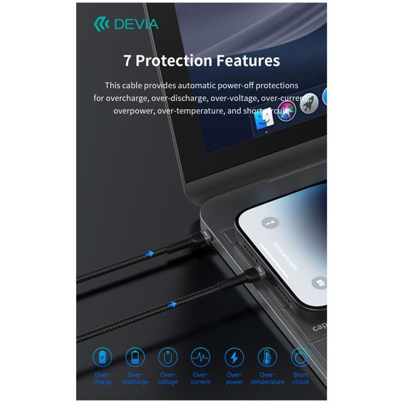 Τα καλώδια Devia, προσφέρουν γρήγορη φόρτιση και ασφαλή μεταφορά δεδομένων. Κατασκευασμένα από υψηλής ποιότητας υλικά, παρέχουν μέγιστη ανθεκτικότητα στην κατηγορία τους ενώ διαθέτουν μοντέρνο και προσεγμένο σχεδιασμό! Εξασφαλίζουν ασφαλή και άμεση φόρτιση ισχύος 3A, για την συσκευή σας με θύρα lightning ή USB C.