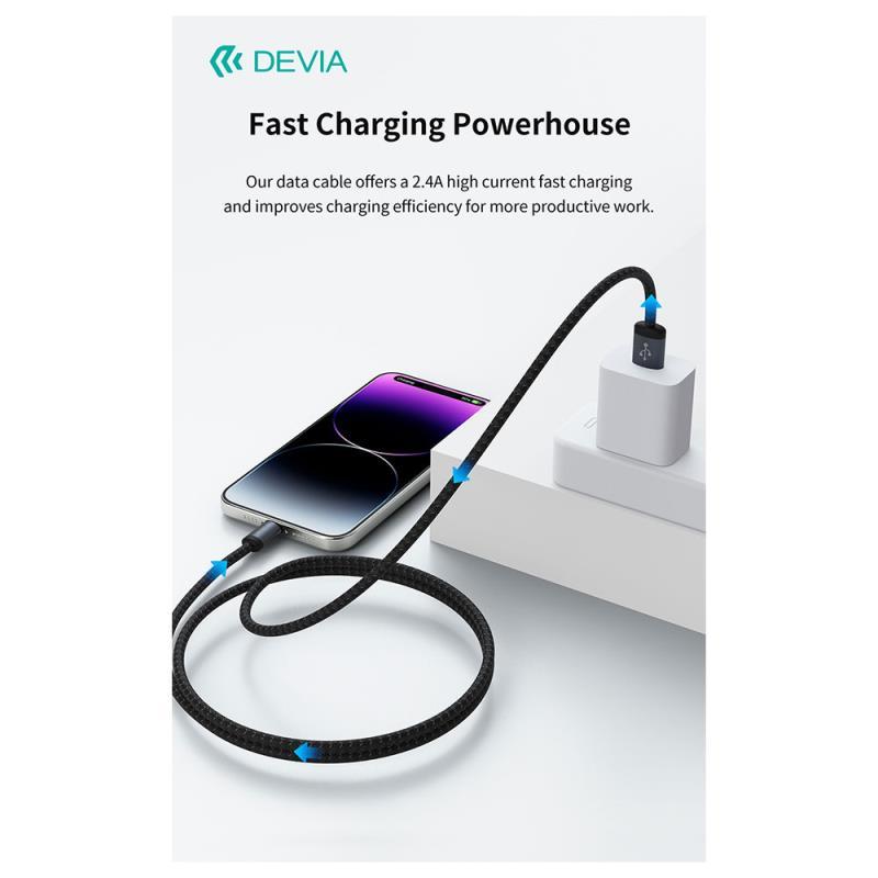 Τα καλώδια Devia, προσφέρουν γρήγορη φόρτιση και ασφαλή μεταφορά δεδομένων. Κατασκευασμένα από υψηλής ποιότητας υλικά, παρέχουν μέγιστη ανθεκτικότητα στην κατηγορία τους ενώ διαθέτουν μοντέρνο και προσεγμένο σχεδιασμό! Εξασφαλίζουν ασφαλή φόρτιση ισχύος 2,1A, άμεση φόρτιση για την συσκευή σας με θύρα Lightning.