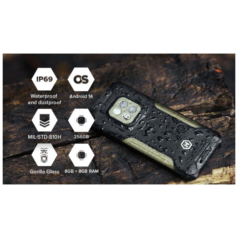 Το Hammer Construction 2 Thermal 5G Military Edition είναι ένα ανθεκτικό smartphone 5G, κατασκευασμένο για απαιτητικά περιβάλλοντα. Διαθέτει οθόνη IPS 6.58 ιντσών με ανάλυση 1080x2408 και ρυθμό ανανέωσης 120 Hz. Στο εσωτερικό του βρίσκεται ένας οκταπύρηνος επεξεργαστής MediaTek Dimensity 6300, σε συνδυασμό με 8GB μνήμης RAM και 256GB αποθηκευτικού χώρου, επεκτάσιμο μέσω microSD έως 1 TB. Για ανθεκτικότητα, διαθέτει πιστοποιήσεις IP69 και MIL-STD-810H, καθιστώντας το ιδιαίτερα ανθεκτικό στο νερό, τη σκόνη και τις ακραίες συνθήκες. Η μπαταρία του είναι μια μεγάλη μονάδα 6500mAh που υποστηρίζει γρήγορη ενσύρματη φόρτιση 33W (5-30W) και ασύρματη φόρτιση 15W. Ένα από τα ξεχωριστά χαρακτηριστικά του είναι η θερμική κάμερα (αισθητήρας HeatView 160x120 px) που μπορεί να ανιχνεύσει θερμοκρασίες από περίπου –10 °C έως 550 °C και ένα ενσωματωμένο λέιζερ τηλεμετρητή έως 50m, ιδανικό για επαγγελματική χρήση. Συνολικά, αυτό το τηλέφωνο συνδυάζει υψηλή ανθεκτικότητα, προηγμένες λειτουργίες κάμερας και επαγγελματικά εργαλεία σε ένα smartphone.