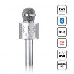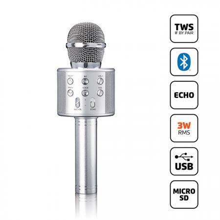 Ασύρματο Bluetooth μικρόφωνο με ενσωματωμένο ηχείο και λειτουργία Karaoke, σε ασημί χρώμα.Με το Lenco BMC-040SI, κάθε στιγμή γίνεται διασκέδαση! Αυτό το συμπαγές και φορητό μικρόφωνο καραόκε σας επιτρέπει να τραγουδάτε οπουδήποτε, χωρίς να χρειάζεστε ογκώδη ηχοσυστήματα. Η ενσωματωμένη επαναφορτιζόμενη μπαταρία προσφέρει πλήρη ελευθερία κινήσεων, ενώ η φόρτιση μέσω USB είναι απλή και γρήγορη.Μεταδώστε ασύρματα τα αγαπημένα σας τραγούδια μέσω Bluetooth από το smartphone ή το tablet σας, ή χρησιμοποιήστε την υποδοχή Micro SD και τη θύρα USB για ακόμα περισσότερες επιλογές μουσικής. Η λειτουργία παραμόρφωσης φωνής με τρία διαφορετικά εφέ, σε συνδυασμό με τον ξεχωριστό έλεγχο ηχούς (echo) και έντασης, σας επιτρέπει να ακούγεστε σαν επαγγελματίας.Το μικρόφωνο είναι ιδανικό για κάθε περίσταση: συνδέστε τα ακουστικά για ιδιωτική διασκέδαση χωρίς να ενοχλείτε κανέναν, ή συνδέστε το σε εξωτερικά ηχεία ή στερεοφωνικό σύστημα (με καλώδιο ήχου, δεν συμπεριλαμβάνεται στη συσκευασία) και γίνετε το απόλυτο αστέρι μπροστά στους φίλους σας.Χαρακτηριστικά:- Premium σχεδιασμός, με μεταλλικές λεπτομέρειες- Ιδανικό για καραόκε και πάρτυ- Ασύρματη σύνδεση- Άμεση σύνδεση και σύζευξη- Τεχνολογία Bluetooth 5.3 - για ασύρματη ροή μουσικής από οποιαδήποτε συσκευή με δυνατότητα σύνδεσης Bluetooth και σταθερή σύνδεση χωρίς παρεμβολές- Διαθέτει θύρα USB και Micro SD, για αναπαραγωγή των αγαπημένων σας κομματιών- Εύκολη σύνδεση του smartphone ή του tablet σας μέσω Bluetooth- Μπαταρία χωρητικότητας 1200mAh, για έως και 12 ώρες non-stop διασκέδαση- Ηχείο 1.0 καναλιού, που παρέχει μονοφωνικό ήχο- True Wireless Stereo (TWS): Αντιστοιχίστε δύο ίδιου τύπου bluetooth μικρόφωνα για να διπλασιάσετε την εμπειρία ήχου- Εύρος λειτουργίας 10m, που παρέχει άφθονη ελευθερία κινήσεων- Δυνατότητα ρύθμισης της ηχώ (Echo), της έντασης του μικροφώνου καθώς και της έντασης της μουσικής- Λειτουργία παραμόρφωση φωνής- Δυνατότητα αναπαραγωγής των αγαπημένων σας κομματιών μέσω USB stick ή κάρτας Micro SD- Δυνατότητα χρήσης και ως εξωτερικό ηχείο- Κουμπιά ελέγχου, για παύση/αναπαραγωγή μουσικής, ενεργοποίηση TWS, ρύθμιση της έντασης- Δυνατότητα σύνδεσης σε σύστημα Hi-Fi (Aux in) ως αντάπτορας Bluetooth και μικρόφωνο- Φόρτιση μέσω USB Type-C (δεν περιλαμβάνεται ο φορτιστής)- Ρυθμιζόμενη ένταση ήχου μικροφώνου και ηχείου- Σύνδεση: Bluetooth- Έκδοση Bluetooth: 5.3- Εύρος σήματος bluetooth: 10 m- Είσοδος σύνδεσης: 1x 3,5 mm, 1x USB-A, 1x Micro SD- Εύρος συχνοτήτων: 2402 - 2480MHz- Μέγιστος χρόνος αναπαραγωγής: 12 ώρες- Χρόνος φόρτισης μπαταρίας: 4 ώρες- Λειτουργεί με την ενσωματωμένη μπαταρία λιθίου 1200mAh / 3.7V- Τάση εισόδου: 5.0 VDC- Ρεύμα εισόδου: 1A- Μέγιστη ισχύς: 3W- Διαστάσεις: 76 x 76 x 225 mm- Υλικό: Αλουμίνιο / Πλαστικό- Χρώμα: ΑσημίΠεριεχόμενα συσκευασίας:- 1x Ασύρματο Bluetooth μικρόφωνο- Καλώδιο φόρτισης USB-C- Εγχειρίδιο οδηγιών