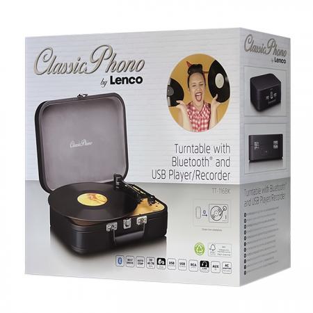 Πικάπ με ενσωματωμένα ηχεία 3W, Bluetooth, βαλίτσα μεταφοράς και λειτουργία μετατροπής σε MP3, σε μαύρο χρώμα.Απολαύστε την αγαπημένη σας μουσική με το κομψό και vintage Bluetooth πικάπ Lenco TT-116BK με ενσωματωμένα ηχεία. Αυτό το πρακτικό πικάπ σε σχήμα βαλίτσας δεν αναπαράγει μόνο τους δίσκους βινυλίου σας, αλλά σας επιτρέπει να μεταδώσετε τη μουσική σας ασύρματα από το κινητό ή το tablet σας, μέσω Bluetooth. Επιπλέον, μπορείτε να ηχογραφήσετε την αναπαραγωγή των δίσκων απευθείας σε USB. Χάρη στα ενσωματωμένα ηχεία του, δεν χρειάζεστε επιπλέον εξωτερικά ηχεία για να απολαύσετε αμέσως τη μουσική σας. Το Classic Phono TT-116BK προσφέρει πολλές επιλογές. Εκτός από την αναπαραγωγή βινυλίων, μπορείτε να κάνετε streaming της μουσικής σας μέσω Bluetooth για γρήγορη και αξιόπιστη σύνδεση με το κινητό σας. Εναλλακτικά, συνδέστε το πικάπ στο ηχοσύστημά σας μέσω AUX-IN ή RCA. Για προσωπική ακρόαση, απλά συνδέστε τα ακουστικά σας και απολαύστε εξαιρετικό ήχο.Classic Phono από την LencoΑνακαλύψτε την ατμόσφαιρα της νοσταλγίας με τα πικάπ Classic Phono, που αντικατοπτρίζουν την εμπειρία και την τεχνογνωσία της Lenco στον τομέα του ήχου και των καταναλωτικών ηλεκτρονικών για περισσότερα από 75 χρόνια. Η ποιότητα ήχου και η κλασική σχεδίαση των πικάπ Classic Phono αποδεικνύουν την καινοτομία και την αξιοπιστία της Lenco, προσφέροντας μια αυθεντική και μοντέρνα μουσική εμπειρία. Classic Phono, όπου το παρελθόν συναντά το μέλλον.Χαρακτηριστικά:- Ρετρό σχεδιασμός- Bαλίτσα με λαβή μεταφοράς - για να μπορείτε εύκολα να απολαμβάνετε τα αρχεία σας όπου κι αν πάτε- Ηχείο με μέγιστη ισχύ 3W για καθαρό και δυνατό ήχο- Τεχνολογία Bluetooth 5.0 – ασύρματη ροή μουσικής από οποιαδήποτε συσκευή με δυνατότητα σύνδεσης Bluetooth- Ταχύτητες αναπαραγωγής: 33, 45 και 78 rpm- Ηχεία 2.0 καναλιών, που παρέχουν στερεοφωνικό ήχο- Επιφάνεια τοποθέτησης δίσκου, διαμέτρου 200mm- Κεφαλή με κεραμική βελόνα N-10- RCA line-out - για ακόμα μεγαλύτερη ενίσχυση του ήχου με την προσθήκη εξωτερικών ηχείων- Διαθέτει θύρα AUX 3.5 mm - για να ακούτε τις αγαπημένες σας ηχογραφήσεις με τα ακουστικά σας- Δυνατότητα ηχογράφησης μουσική στο USB stick σας, είτε την αναπαράγετε μέσω βινυλίου, Bluetooth ή σύνδεσης AUX- Δυνατότητα μετατροπής των αγαπημένων σας κομματιών σε ψηφιακή μορφή (MP3) μέσω USB- Διαθέτει 2 ενσωματωμένα ηχεία και (προ)ενισχυτή- Δυνατότητα μετάδοσης της αγαπημένης σας από το τηλέφωνό σας μέσω Bluetooth- Μέγεθος βινυλίου: 7", 10", 12"- Είσοδος ήχου:1x Aux in- Έξοδος ήχου: 1x Stereo RCA, 1x ακουστικά 3.5 mm, 1x USB- Έκδοση Bluetooth: v5- Εύρος σήματος Bluetooth: 10 m- Στερεοφωνική έξοδος ήχου- Λειτουργία αυτόματης διακοπής- Αναλογία σήματος προς θόρυβο: 18 dB- Media playback: Bluetooth, LP- Ειδική λειτουργία: Belt drive- RMS: 2x1.5W- Τύπος πικάπ: Χειροκίνητο- Τάση εισόδου: 100-240V / 50-60Hz- Τάση εξόδου: 5V- Ρεύμα εξόδου: 1.0Α- Συνολική ισχύς εξόδου: 3W- Μέγιστη κατανάλωση ισχύος: 8W- Υλικό κατασκευής: Μέταλλο, Τεχνητό δέρμα, Πλαστικό, Ξύλο- Χρώμα: ΜαύροΠεριεχόμενα συσκευασίας:- Πικάπ- Αντάπτορας 45 RPM- Τροφοδοτικό AC- Εγχειρίδιο οδηγιών