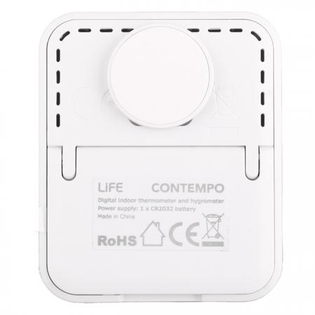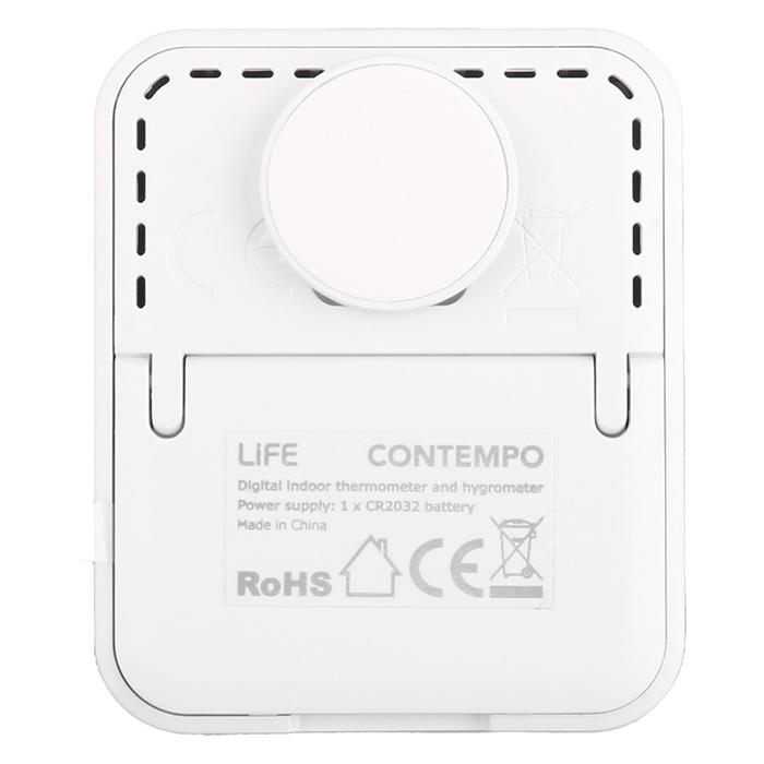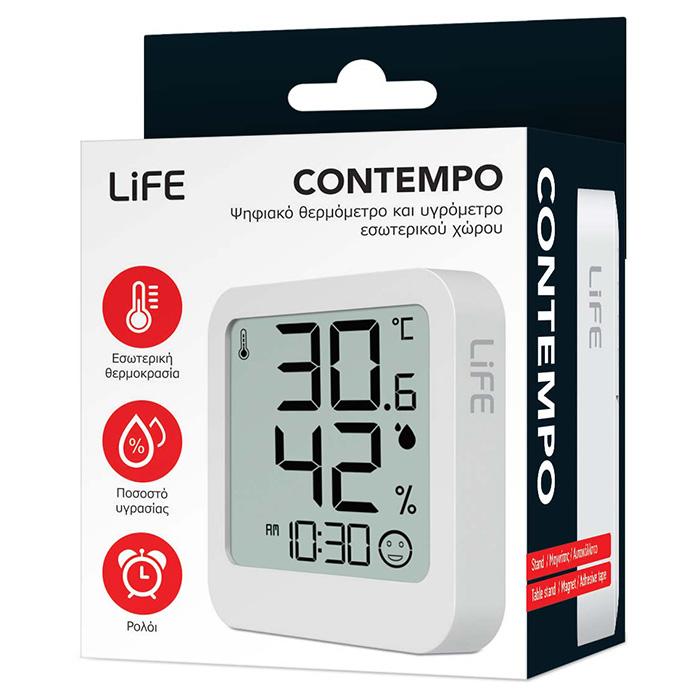 Ψηφιακό θερμόμετρο και υγρόμετρο εσωτερικού χώρου.Κομψό, μικρό, minimal και σε λευκό χρώμα, είναι ένα τέλειο gadget για κάθε δωμάτιο του σπιτιού σας.Διαθέτει ευκρινή LCD οθόνη και ευανάγνωστα ψηφία, για να παρακολουθείτε την εσωτερική θερμοκρασία και τα επίπεδα υγρασίας στον χώρο σας. Διαθέτει επιπλέον ρολόι και προβολή υψηλότερης/χαμηλότερης θερμοκρασίας και υγρασίας.Επίσης διαθέτει 5 εικονίδια επιπέδου άνεσης ανάλογα με το ποσοστό υγρασίας του χώρου.Λειτουργεί με μπαταρία και μπορεί να τοποθετηθεί οπουδήποτε εσείς θέλετε στον χώρο σας, αφού διαθέτει 4 διαφορετικές λύσεις τοποθέτησης:1. Πρακτικό αναδιπλούμενο stand επιτραπέζιας τοποθέτησης, 2. Κρυφό μαγνήτη στο πίσω μέρος,3. Αυτοκόλλητο γαντζάκι ο οποίος προσαρτάται στην υποδοχή για καρφί και4. Υποδοχή για στερέωση σε καρφί τοίχουΧαρακτηριστικά:- Εύρος μετρήσιμης εσωτερικής θερμοκρασίας: -9.9°C - +50°C- Εύρος μετρήσιμης εσωτερικής υγρασίας: 20% - 95% RH- Εμφάνιση κατώτατης/μέγιστης θερμοκρασίας και υγρασίας- 5 εικονίδια επιπέδου άνεσης ανάλογα με το ποσοστό υγρασίας- Με αναδιπλούμενο stand/μαγνήτη στο πίσω μέρος/αυτοκόλλητο γάντζο - Οθόνη LCD με μεγάλα ψηφία και ρολόι- Διαστάσεις: 50.5 x 60.5 x 13mm- Χρώμα: Λευκό- Λειτουργεί με μπαταρία: 1 x CR2032 μπαταρία (συμπεριλαμβάνεται)- 2 χρόνια εγγύηση
