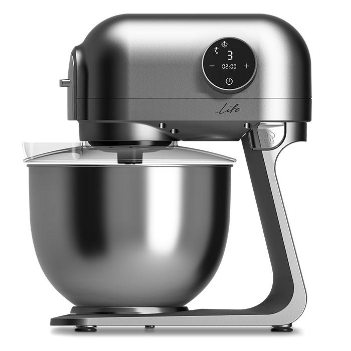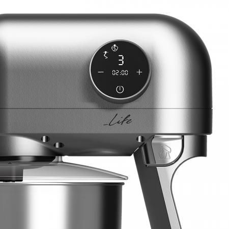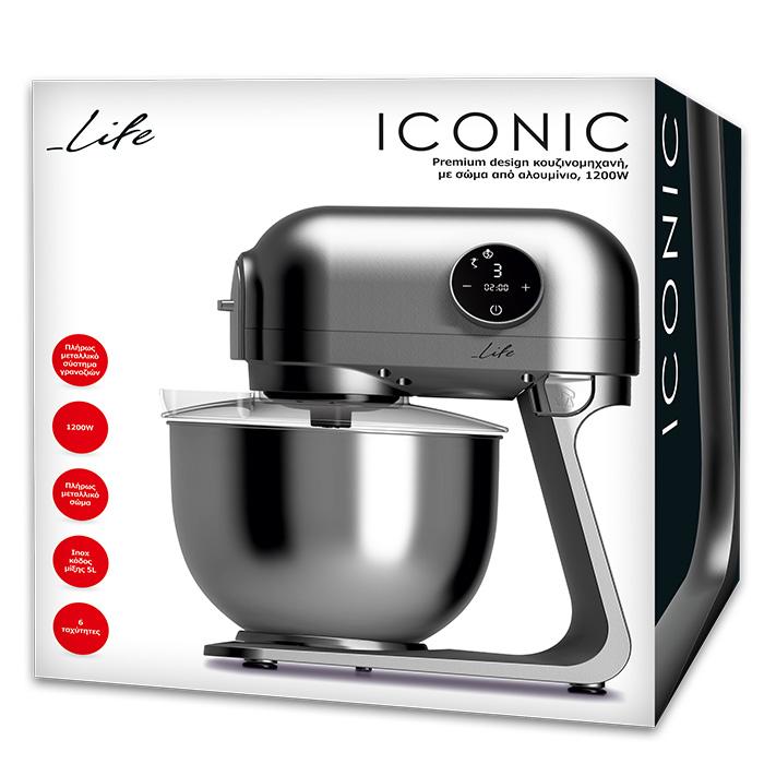 Premium design κουζινομηχανή, με σώμα από αλουμίνιο και inox κάδο μίξης 5L, 1200W.Minimal designMaximal PerformanceΗ εμβληματική κουζινομηχανή LIFE ICONIC, με minimal design και πλήρως μεταλλική κατασκευή, θα γίνει το απόλυτο, eye-catching εργαλείο μαγειρικής στην κουζίνα σας! Διαθέτει ισχυρό μοτέρ 1200W, κατασκευασμένο από 100% χαλκό, πλήρως μεταλλικό σύστημα γραναζιών για εξαιρετική αντοχή και δύναμη και σώμα από αλουμίνιο, ορίζοντας έτσι μια κουζινομηχανή με κορυφαία ποιότητα κατασκευής και μέγιστη αντοχή στο χρόνο!Το μπόλ ανάμειξης από ανοξείδωτο ατσάλι, μέγιστης χωρητικότητας 5L, διαθέτει επιπλέον διαφανές αποσπώμενο καπάκι για προστασία από πιτσιλιές και πρακτικό άνοιγμα συμπλήρωσης υλικών κατά την διάρκεια της λειτουργίας. Η LIFE ICONIC διαθέτει οθόνη αφής από την οποία ορίζετε μία από τις 6 ταχύτητες λειτουργίας και μπορείτε να ρυθμίσετε την λειτουργία του χρονοδιακόπτη από 1 έως 10 λεπτά, για αυτόματη απενεργοποίηση σε όλες τις ταχύτητες λειτουργίας.Είναι εξοπλισμένη με τρία εξαρτήματα για να επιλέγετε ανάλογα με τα υλικά και την συνταγή σας: γάντζο ανάμιξης από αλουμίνιο, γάντζο ζυμώματος και αυγοδάρτη από ανοξείδωτο ατσάλι. Με την πλανητική κίνηση των αναδευτήρων και με την σταθερή ταχύτητα ανάμιξης που προσφέρει, θα έχετε γρήγορα και τέλεια αποτελέσματα ακόμα και σε βαριές ζύμες!Το ασφαλές κλείδωμα του κάδου, το πλήκτρο απασφάλισης βραχίονα και τα ποδαράκια με βεντούζες προσφέρουν εξαιρετική σταθερότητα κατά την λειτουργία της συσκευής. Τέλος, διαθέτει λειτουργία αυτόματης απενεργοποίησης όταν σηκωθεί η κεφαλή κατά τη λειτουργία για μέγιστη ασφάλεια!Χαρακτηριστικά:- Iσχυρό AC μοτέρ 1200W, κατασκευασμένο από 100% χαλκό- Πλήρως μεταλλικό σύστημα γραναζιών- Σώμα μηχανής κατασκευασμένο από αλουμίνιο - Πλανητική κίνηση αναδευτήρων, με σταθερή ταχύτητα ανάμιξης για γρήγορα και τέλεια αποτελέσματα ακόμα και σε βαριές ζύμες- Μεγάλος κάδος μίξης από ανοξείδωτο ατσάλι 5L- Αποσπώμενο διαφανές καπάκι με άνοιγμα για εύκολη συμπλήρωση υλικών- 6 ταχύτητες- Δυνατότητα ρύθμισης χρονοδιακόπτη από 1 έως 10 λεπτά σε όλες τις ταχύτητες λειτουργίας, για αυτόματη απενεργοποίηση - Πλήκτρα αφής- Χαμηλό επίπεδο θορύβου λειτουργίας- Μηχανισμός ασφαλείας του βραχίονα, για ομαλό ανέβασμα και κατέβασμα- Αυτόματη απενεργοποίηση όταν σηκωθεί η κεφαλή κατά τη λειτουργία- Ασφαλές κλείδωμα του κάδου για εξαιρετική σταθερότητα κατά τη λειτουργία- Διαθέτει γάντζο ανάμιξης από αλουμίνιο, γάντζο ζυμώματος και αυγοδάρτη από ανοξείδωτο ατσάλι- Ιδιαίτερα εύκολη στον καθαρισμό και στη χρήση- Εξαιρετική σταθερότητα βάσης, χάρη στα ποδαράκια με βεντούζες που διαθέτει- Διαστάσεις συσκευής (ΜxΠxY): 357 x 173 x 295mm- Βάρος: 5589g- Τροφοδοσία: 220-240V, 50/60Hz- 2 χρόνια εγγύηση