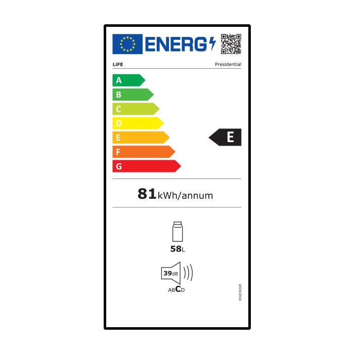 Ψυγείο Mini Bar με πρόσοψη επενδυμένη με μαύρο γυαλί, 58LΤο ψυγείο Mini Bar LiFE PRESIDENTIAL, με ευρύχωρο εσωτερικό, compact εξωτερικές διαστάσεις, σε μαύρο χρώμα, είναι η ιδανική επιλογή για μικρά νοικοκυριά, ενοικιαζόμενα δωμάτια, δωμάτια ξενοδοχείων, Airbnb και studios.Έχει χωρητικότητα 58 λίτρων και ανεξάρτητο θάλαμο κατάψυξης με πορτάκι. Διαθέτει αποσπώμενα πρακτικά γυάλινα ράφια για βέλτιστη οργάνωση αλλά και εύκολο πλύσιμο, ενώ το ενισχυμένο λάστιχο της πόρτας εγγυάται ασφαλή διατήρηση των τροφίμων σας. Διαθέτει επιπλέον εσωτερικό φωτισμό LED για την διευκόλυνσή σας κάθε φορά που το ανοίγετε.Επιπλέον, η πόρτα έχει δυνατότητα αλλαγής φοράς ανοίγματος και ρυθμιζόμενο ύψος ποδιών, για να ταιριάζει σε κάθε χώρο, ενώ το επίπεδο θορύβου είναι χαμηλό, μόλις 39dB, εξασφαλίζοντας μια αθόρυβη λειτουργία.Η πρόσοψη του mini bar καλύπτεται με κομψό γυαλί σε μαύρο χρώμα και προσδίδει premium αισθητική και μοντέρνο χαρακτήρα στη συσκευή, μετατρέποντάς την σε statement κομμάτι στον χώρο σας.Λειτουργεί με οικολογικό ψυκτικό υγρό R600a και έχει χαμηλή κατανάλωση ενέργειας.Χαρακτηριστικά:- Χωρητικότητα 58L- Πρόσοψη επενδυμένη με μαύρο γυαλί- Εσωτερικός φωτισμός LED- Χωρίς τυπωμένο λογότυπο για διακριτική ενσωμάτωση στο χώρο σας!- Εσωτερικό σε μαύρο χρώμα- Αποσπώμενα γυάλινα ράφια- Με μικρό θάλαμο κατάψυξης- Δυνατότητα αλλαγής φοράς πόρτας- Ρυθμιζόμενο ύψος ποδιών- Επίπεδο θορύβου: 39dB- Ψυκτικό υγρό R600a- Κλιματική κλάση N/ ST- Ενεργειακή κλάση Ε - Χρώμα: Μαύρο- Διαστάσεις συσκευής (ΠxΒxΥ): 470 x 450 x 632mm - Τροφοδοσία: 220-240V~, 50Hz- 2 χρόνια εγγύηση