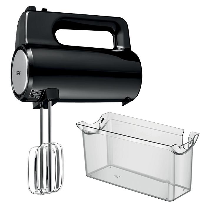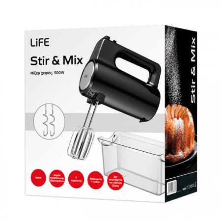 Μίξερ χειρός, 500WΜίξερ χειρός 5 ταχυτήτων, 500W, με πρακτικό μπολ ανάμιξης υλικών και αποθήκευσης των εξαρτημάτων.Με το ισχυρό και ελαφρύ μίξερ χειρός LIFE Stir & Mix, θα δημιουργήσετε εύκολα και γρήγορα ζύμες για γλυκά, ψωμί, κέικ και θα γίνει ένα απαραίτητο εργαλείο στην κουζίνα σας.Διαθέτει 2 αναδευτήρες και 2 γάντζους ζυμώματος από ανοξείδωτο ατσάλι, μήκους 18,4εκ. το καθένα, για να μπορείτε να το χρησιμοποιείτε για ένα μεγάλο εύρος μαγειρικών συνταγών. Σημαντικό του πλεονέκτημα είναι ότι οι αναδευτήρες και οι γάντζοι μπορούν να πλυθούν γρήγορα και εύκολα στο πλυντήριο πιάτων για τη μέγιστη διευκόλυνσή σας!Με τον διακόπτη επιλογής 5 ταχυτήτων έχετε τη δυνατότητα να ρυθμίσετε το επιθυμητό επίπεδο ανάδευσης ανάλογα με τις ανάγκες της κάθε συνταγής.Επιπλέον, η επιλογή "Turbo" κάνει το LIFE Stir & Mix πανίσχυρο και έτοιμο να αντεπεξέλθει στις πιο απαιτητικές ζύμες! Η αφαίρεση των αναδευτήρων γίνεται εύκολα με το πάτημα ενός πλήκτρου, κάνοντας τον καθαρισμό τους πανεύκολο!Τέλος, διαθέτει πρακτικό δοχείο αποθήκευσης των εξαρτημάτων, το οποίο μπορεί να χρησιμοποιηθεί και σαν μπολ για το μείγμα σας!Χαρακτηριστικά:- 5 ταχύτητες λειτουργίας- Πλήκτρο "Turbo" για ακόμα πιο έντονη και δυνατή ανάδευση- Διαθέτει 2 αναδευτήρες και 2 γάντζους ζυμώματος από ανοξείδωτο ατσάλι, μήκους 18.4εκ.- Οι αναδευτήρες και οι γάντζοι πλένονται στο πλυντήριο πιάτων- Κουμπί εκτίναξης αναδευτήρων για εύκολη αφαίρεση - Πρακτικό δοχείο αποθήκευσης των εξαρτημάτων- Διαστάσεις συσκευής (μαζί με το δοχείο): 20 x 9.2 x 22.9cm- Τροφοδοσία: 220-240V~, 50-60Hz- Ισχύς: 500W- Βάρος συσκευής (χωρίς το δοχείο): 1.1kg- Χρώμα: Μαύρο - Ασημί- 2 χρόνια εγγύηση