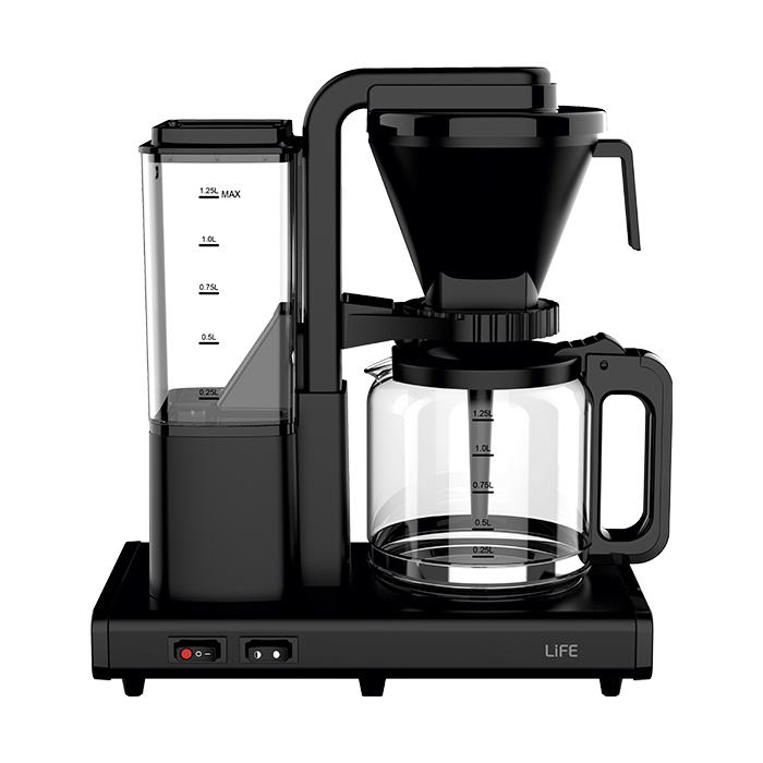 Καφετιέρα φίλτρου 1.25L, 1400WΗ καφετιέρα φίλτρου LiFE SYMBOL B της σειράς Flat Black, προσθέτει πόντους στην αισθητική της κουζίνα σας, με το ιδιαίτερο design της, σε ματ μαύρο χρώμα.Το μοναδικό της design, σε συνδυασμό με τα πρακτικά χαρακτηριστικά της, θα της δώσουν μια περίοπτη θέση στον πάγκο της κουζίνας σας.Διαθέτει υψηλής αντοχής γυάλινη κανάτα χωρητικότητας 1.25L (έως 10 φλυτζάνια καφέ) με ένδειξη ποσότητας και θερμαινόμενη πλάκα, τη θερμοκρασία της οποίας μπορείτε να ρυθμίσετε (μέτρια/ υψηλή), για να διατηρεί τον καφέ σας ζεστό.Είναι πολύ εύκολη στο καθάρισμα χάρη στο αποσπώμενο και πλενόμενο φίλτρο καφέ. Επιπλέον η LiFE SYMBOL S διαθέτει λειτουργία anti-drip, για να μην στάζει, όταν παίρνετε την κανάτα από τη βάση για να σερβίρετε.Διαθέτει διακόπτη ενεργοποίησης/απενεργοποίησης με ενδεικτική φωτιζόμενη λυχνία και αυτόματη απενεργοποίηση μετά από 40 λεπτά άνευ χρήσης, για εξοικονόμηση ενέργειας.Επιπλέον, η LiFE SYMBOL B διαθέτει προστασία από υπερθέρμανση, για απόλυτη ασφάλεια στη χρήση της.Συνδυάστε την καφετιέρα LiFE SYMBOL B με τα υπόλοιπα προϊόντα της σειράς LiFE Flat Black Series για να δώσετε στην κουζίνα σας μια ομοιόμορφη εικόνα premium αισθητικής σε ματ μαύρο χρώμα.Χαρακτηριστικά:- Χωρητικότητα 1.25L (έως 10 φλυτζάνια καφέ)- Υψηλής αντοχής γυάλινη κανάτα με ένδειξη φλυτζανιών- Διαθέτει λειτουργία anti-drip για προστασία, ώστε να μην στάζει, όταν παίρνετε την κανάτα -Διακόπτης ρύθμισης επιπέδου θερμοκρασίας της θερμαινόμενης πλάκας: «μισή» (μέτρια θερμοκρασία διατήρησης του καφέ) ή «πλήρης» (υψηλή θερμοκρασία διατήρησης του καφέ)- Εύκολη πλήρωση νερού και καφέ- Αποσπώμενο και πλενόμενο φίλτρο καφέ- Διακόπτης ενεργοποίησης / απενεργοποίησης, με ενδεικτική φωτιζόμενη λυχνία- Εξωτερική ένδειξη στάθμης νερού στο δοχείο τροφοδοσίας νερού- Θερμαινόμενη πλάκα που διατηρεί τον καφέ ζεστό- Αυτόματη απενεργοποίηση μετά από 40 λεπτά άνευ χρήσης,για εξοικονόμηση ενέργειας- Λειτουργία προστασίας από υπερθέρμανση- Συμπεριλαμβάνεται πρακτικό κουτάλι / δοσομετρητής καφέ- Διαστάσεις συσκευής: 33.6x17.6x35.6cm- Τροφοδοσία: 220-240V~, 50-60Hz- Ισχύς: 1400W- Χρώμα: Μαύρο Ματ- 2 χρόνια εγγύηση