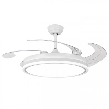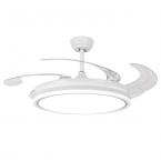 Ανεμιστήρας οροφής DC 42" με αναδιπλούμενα πτερύγια, LED φωτιστικό και τηλεχειριστήριο, 30WΔροσίστε το χώρο σας με τον ανεμιστήρα οροφής LIFE VERANO, έναν ανεμιστήρα με μοντέρνο design, και 4 διάφανα πτερύγια που «μαζεύουν», όταν ο ανεμιστήρας είναι απενεργοποιημένος, ώστε να μην καταλαμβάνουν χώρο στο δωμάτιό σας.Ο ανεμιστήρας έχει διάμετρο 108 εκατοστών, 6 ταχύτητες λειτουργίας και ισχυρό DC μοτέρ 30W χαμηλού θορύβου. Διαθέτει δύο άξονες διαφορετικού μήκους (10cm και 20cm), για να επιλέξετε την επιθυμητή απόσταση από την οροφή, καθώς κι επιλογή αντίστροφης λειτουργίας ανεμιστήρα, κατάλληλη για λειτουργία τον χειμώνα για την καλύτερη κατανομή της θερμότητας και οικονομία στο κόστος θέρμανσης.Επίσης, διαθέτει ενσωματωμένο φωτιστικό LED με max. ισχύ 72W και φωτεινότητα έως 5400lm, για να έχετε άπλετο φως στον χώρο σας, ενώ περιλαμβάνεται και τηλεχειριστήριο για άνεση στον χειρισμό τόσο του ανεμιστήρα όσο και του ενσωματωμένου φωτιστικού του. Μέσω του τηλεχειριστηρίου μπορείτε να επιλέξετε μεταξύ 3 θερμοκρασιών χρώματος (3500K / 4000K / 6500K), αναλόγως των προτιμήσεών σας.Τέλος, μπορείτε να προγραμματίσετε τον χρόνο λειτουργίας του χάρη στο χρονοδιακόπτη που διαθέτει για αυτόματη απενεργοποίηση σε 4 ώρες, ενώ ταυτόχρονα παράγει ιδιαίτερα χαμηλά επίπεδα θορύβου (41dB) κατά τη λειτουργία του.Χαρακτηρστικά:- Με πτερύγια που «μαζεύουν», όταν δεν λειτουργεί ο ανεμιστήρας- Διάμετρος ανεμιστήρα: 108cm (42") - 4 διάφανα πλαστικά πτερύγια- Μήκος πτερυγίου: περ. 40cm- 6 ταχύτητες ανεμιστήρα (175/186/202/215/225/241 RPM)- Ροή αέρα: έως 150 m³/min στη μέγιστη ταχύτητα- Με δύο άξονες διαφορετικού μήκους (10cm και 20cm), για να επιλέξετε την επιθυμητή απόσταση από την οροφή- Ύψος ανεμιστήρα με βάση: περίπου 35cm ή 45cm- Δυνατότητα αντίστροφης λειτουργίας ανεμιστήρα, κατάλληλη για λειτουργία τον χειμώνα- Ισχυρό και χαμηλού θορύβου DC μοτέρ- Επίπεδο θορύβου: <= 41dB- Ενσωματωμένο LED φωτιστικό max. 72W- Μέγιστη φωτεινότητα: 5400lm- Επιλογή μεταξύ 3 θερμοκρασιών χρώματος φωτισμού από το τηλεχειριστήριο (3500K / 4000K / 6500K)- Τηλεχειριστήριο για εύκολο και άνετο χειρισμό του ανεμιστήρα και του φωτιστικού- Χρονοδιακόπτης για αυτόματη απενεργοποίηση του ανεμιστήρα (έως και 4 ώρες)- Ιδανικό για δωμάτια έως 16m²- Υλικό κατασκευής: Μέταλλο, πλαστικό- Τροφοδοσία: 220-240V~, 50Hz- Ισχύς: 30W (ανεμιστήρας) / 72W (φωτιστικό)- Καθαρό βάρος: 4Kg- Χρώμα: Λευκό - 2 χρόνια εγγύηση