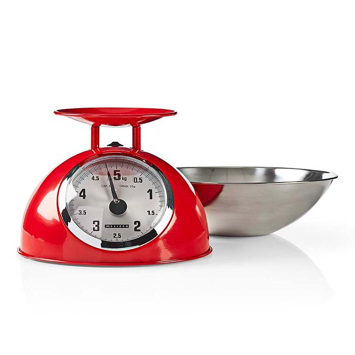 Αναλογική ζυγαριά κουζίνας, τύπου ρετρό, σε κόκκινο μεταλλικό χρώμα.Η αναλογική ζυγαριά κουζίνας της Melissa συνδυάζει κομψό ρετρό σχεδιασμό με πρακτική λειτουργικότητα, προσφέροντας ακρίβεια και ευκολία χρήσης σε κάθε κουζίνα. Ο μηχανικός δείκτης με διαβαθμίσεις ανά 25 γραμμάρια εξασφαλίζει ακριβείς μετρήσεις, καθιστώντας την ιδανική για καθημερινό μαγείρεμα και ζαχαροπλαστική.Το αποσπώμενο μπολ από ανοξείδωτο ατσάλι είναι ανθεκτικό σε λεκέδες και οσμές και καθαρίζεται εύκολα, ενώ εφαρμόζει σταθερά στη ζυγαριά κατά τη χρήση. Με μέγιστη χωρητικότητα 5kg, μπορεί να ζυγίσει αλεύρι, ζάχαρη, φρούτα, λαχανικά ή ξηρά τρόφιμα, προσφέροντας ευελιξία για μικρές και μεγαλύτερες ποσότητες.Η στιβαρή μεταλλική κατασκευή της εξασφαλίζει ανθεκτικότητα και μακροχρόνια χρήση, χωρίς την ανάγκη μπαταριών ή φόρτισης. Συμπαγής και εύκολη στην αποθήκευση, συνδυάζει πρακτικά χαρακτηριστικά με αισθητική, καθιστώντας τη Melissa αναλογική ζυγαριά κουζίνας μια αξιόπιστη επιλογή για όσους εκτιμούν κλασικά, λειτουργικά εργαλεία στην κουζίνα.Χαρακτηριστικά:- Κομψός ρετρό σχεδιασμός που αναβαθμίζει αισθητικά κάθε κουζίνα- Στιβαρή μεταλλική κατασκευή που εξασφαλίζει αντοχή και μακροχρόνια αξιοπιστία - Δυνατότητα ζύγισης έως 5 κιλά, ιδανική για καθημερινό μαγείρεμα και ζαχαροπλαστικές δημιουργίες- Ευανάγνωστη κλίμακα με ακριβείς διαβαθμίσεις ανά 25 γραμμάρια- Διαθέτει αποσπώμενο μεγάλο μπολ από ανοξείδωτο ατσάλι, για εύκολο καθαρισμό- Μεγάλα και ευανάγνωστα νούμερα- Μέγιστο βάρος μέτρησης: 5kg- Ακρίβεια: 25g - Μονάδα μέτρησης: kg, g- Λειτουργία απόβαρου- Υλικό: Ανοξείδωτο ατσάλι- Χρώμα: ΚόκκινοΠεριεχόμενα συσκευασίας:- 1x Ζυγαριά κουζίνας- 1x Μπολ- Εγχειρίδιο χρήσης