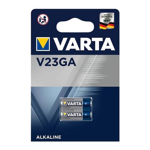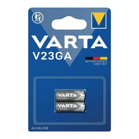 Μπαταρίες Alkaline Varta V23GA μεγάλης διάρκειας σε συσκευασία 2 τεμαxίων. Οι μπαταρίες διαθέτουν πιστοποίηση ISO9002 και πληρούν όλες τις προδιαγραφές της Ε.Ε.
