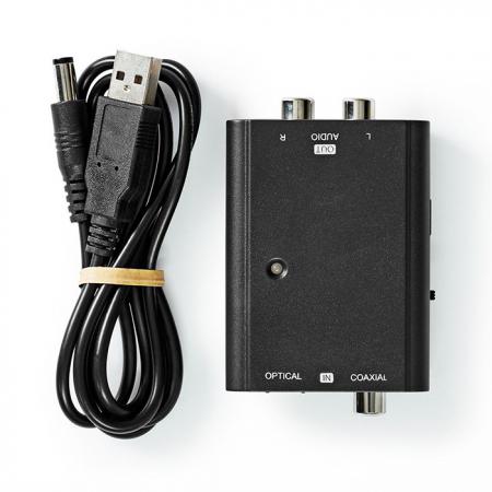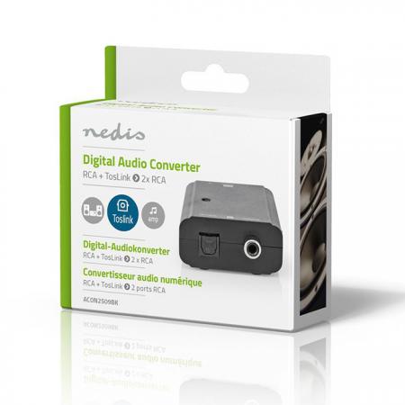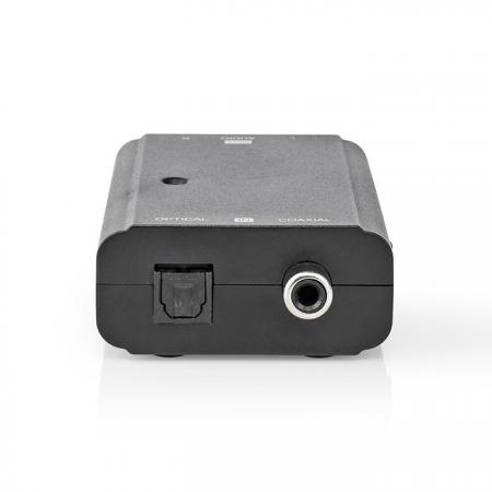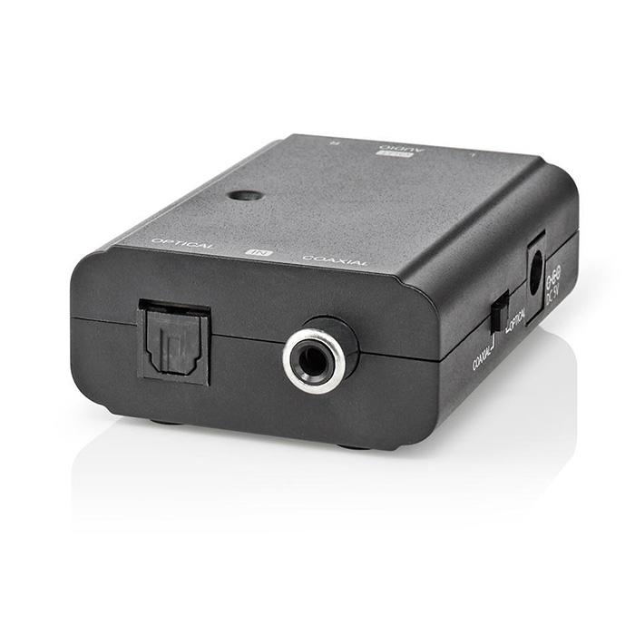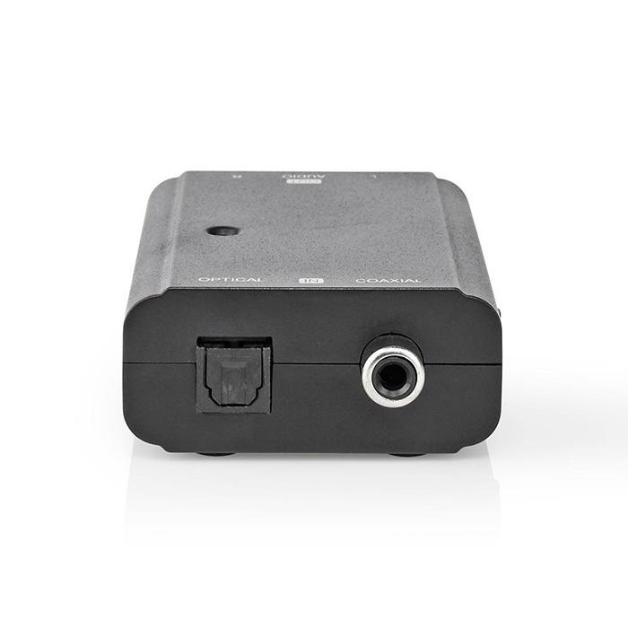 Αμφίδρομος ψηφιακός μετατροπέας ήχου από TosLink θηλ. και S/PDIF (RCA) θηλ. σε T- Έξοδος: 2x RCA αρσ. και αντίστροφα.Συνδέστε μια συσκευή Blu-ray ή DVD σε έναν δέκτη ή ενισχυτή. Μετατρέπει το ψηφιακό σήμα ήχου S/PDIF και TosLink σε αναλογικό stereo σήμα RCA και αντίστροφα, ενώ μπορεί να λειτουργήσει και ως pass through, ενισχύοντας το σήμα. Στη θύρα εξόδου, το σήμα ήχου αποστέλλεται μέσω της υποδοχής RCA.- Είσοδος: 1x TosLink θηλ. και 1x S/PDIF (RCA) θηλ.- Έξοδος: 2x RCA αρσ.Χαρακτηριστικά- Αμφίδρομη μετατροπή σήματος TosLink και S/PDIF (RCA) σε αναλογικό stereo σήμα RCA- Συμπαγής σχεδιασμός, για εύκολη εγκατάσταση και χρήση- Ενισχύει το ψηφιακό σήμα- Διαθέτει LED ένδειξη ενεργοποίησης- Καλωδίου τροφοδοσίας: 1,80 m- Λειτουργία ελέγχου: Αυτόματα- Κατανάλωση ενέργειας σε κατάσταση αναμονής: 1W- Κατανάλωση ενέργειας σε λειτουργία: 2W - Ρεύμα εισόδου: 600mA- Τάση εισόδου: 5 VDC- Υποστηριζόμενες μορφές: PCM- Υλικό κατασκευής: ABS- Διαστάσεις: 84 x 57 x 23 mm- Χρώμα: ΜαύροΠεριεχόμενα συσκευασίας- 1x μετατροπέας ήχου- 1x καλώδιο τροφοδοσίας DC σε USB- Εγχειρίδιο χρήση