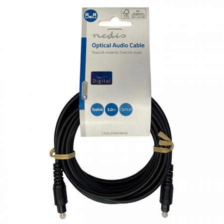 Καλώδιο οπτικής ίνας, TosLink αρσ. - αρσ., 3.00m σε μαύρο χρώμα.
