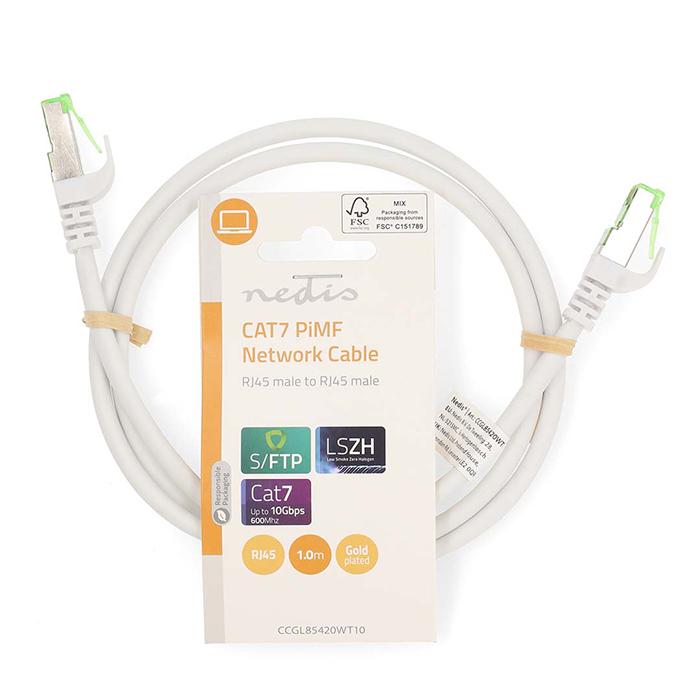 Καλώδιο δικτύου CAT 7, S/FTP, 1.00m σε λευκό χρώμα.- Επίχρυσες επαφές- Σύνδεση 1: RJ45 αρσ. (8P8C)- Σύνδεση 2: RJ45 αρσ. (8P8C)- Κατηγορία: CAT 7- Μήκος καλωδίου: 1.00 m- Διάμετρος: 5.8 mm- Ιδανικό για δίκτυα: 10/100/1000/10000 Mbits- Θωράκιση: S/FTP- Μανδύας: LSZH (Low Smoke Zero Halogen)- Υλικό αγωγού: Χαλκός- Εύρος ζώνης: 10 Gbps- Συχνότητα: 600 MHz- Χρώμα: Λευκό- Συσκευασία: Bulk