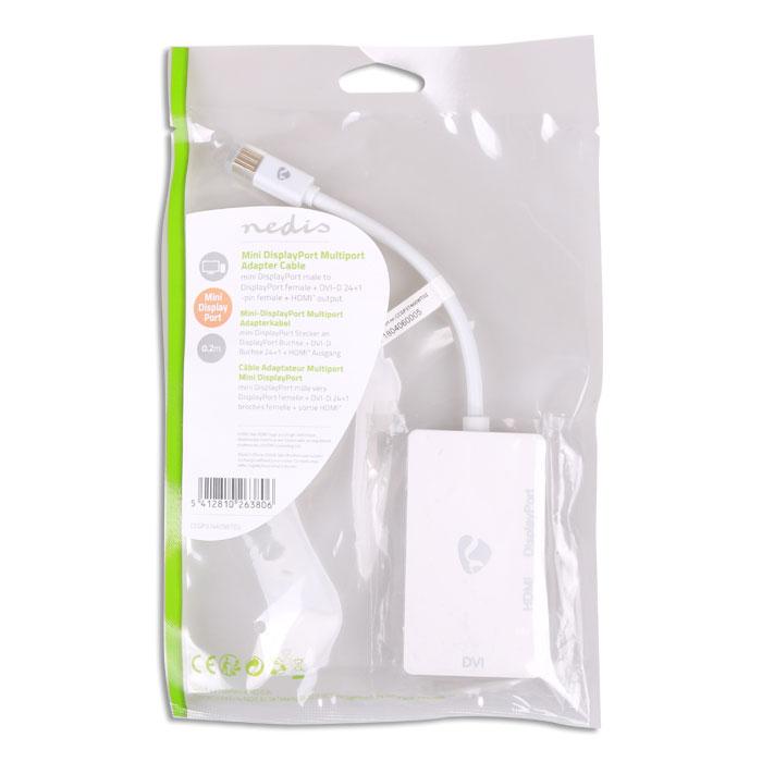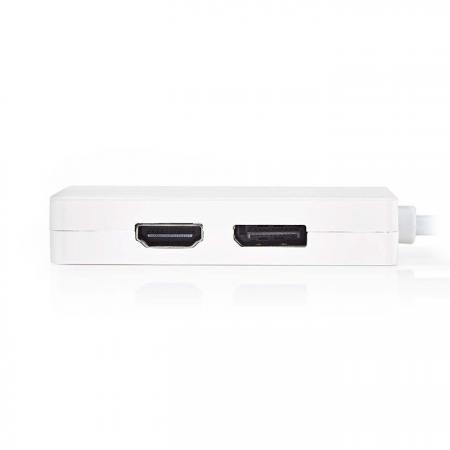 Αντάπτορας Mini DisplayPort σε DVI + DP + HDMI. - Μήκος: 0.20 m - Σύνδεση 1: Μίνι DP αρσενικό - Σύνδεση 2: DVI, DP, HDMI θηλυκό- Χρώμα: Λευκό- Εξωτερικό υλικό: PVC- Συσκευασία: Polybag- Μέγιστη. ανάλυση: 1080P- Μέγιστος ρυθμός μεταφοράς δεδομένων: 21.6Gbps- Υλικό αγωγού: Χαλκός- Διάμετρος: 5,5 mm