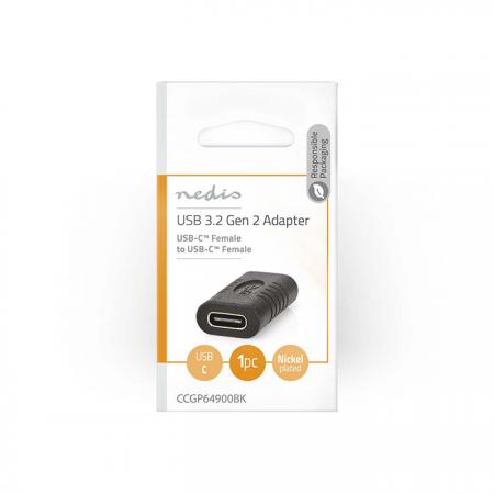 Αντάπτορας USB 3.2 Gen 2x1 Type-C θηλ. - Type-C θηλ.- Κατάλληλο για τη σύνδεση δύο καλωδίων USB με υποδοχές USB Type-C- Μέγιστη μέτρηση καλωδίων: 2 x 3 m.- Υποστηριζόμενες αναλύσεις: 4K@60Hz, 4K@30Hz, 1080p- Λειτουργία Plug and Play- Σύνδεση 1: USB type C θηλ.- Σύνδεση 2: USB type C θηλ.- Τεχνολογία: USB 3.2 Gen 2x1- Μέγιστη ανάλυση: 4K@60Hz- Μέγιστος ρυθμός μεταφοράς δεδομένων: 10 Gbps- Πρότυπο ανάλυσης: 4K UHD- Εξωτερικό υλικό: PVC- Επιμετάλλωση: Νικέλιο- Χρώμα: Μαύρο- Συσκευασία: Paperbag with hook