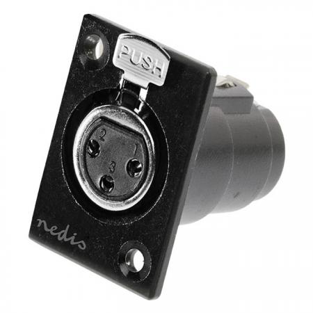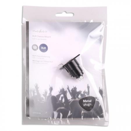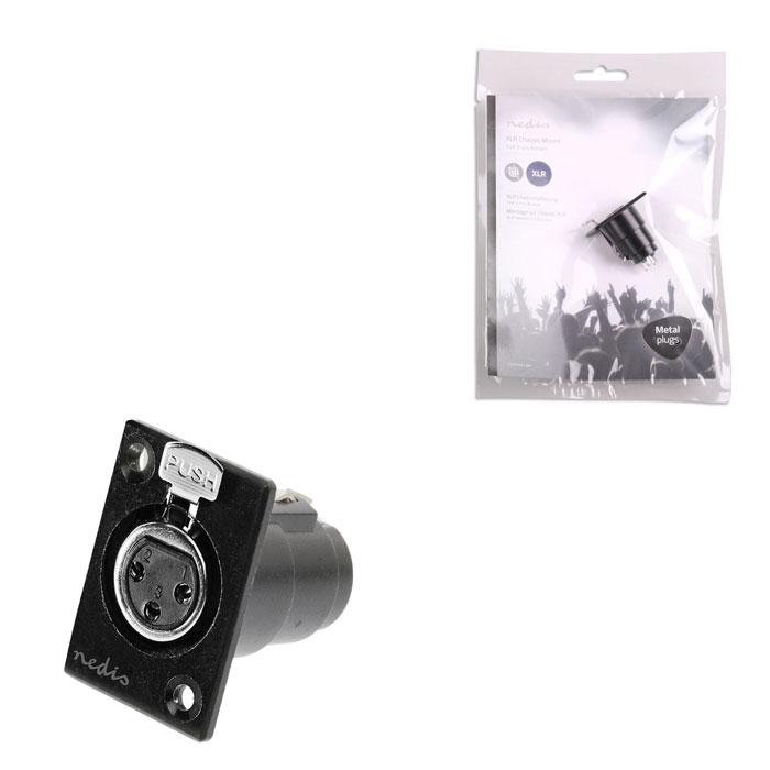 XLR 3-Pin θηλυκό σασί. - Σύνδεση: XLR 3-Pin θηλυκό - Επινικελωμένες επαφές - Υλικό: Μέταλλο- Χρώμα: Μαύρο- Συσκευασία: Polybag