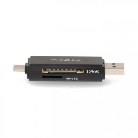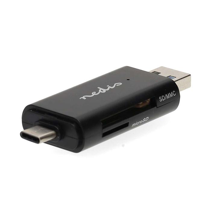 Card Reader USB 3.2 Gen 1x1 με διπλή υποδοχή Type-A & Type-C.Η συσκευή ανάγνωσης καρτών της Nedis προσφέρει υψηλή απόδοση και ευελιξία στη μεταφορά αρχείων, και μπορεί να συνδεθεί τόσο σε θύρες USB-C όσο και USB-A για ευρεία συμβατότητα με όλες τις σύγχρονες και παλαιότερες συσκευές. Υποστηρίζει τις κάρτες μνήμης SD, SDHC, SDXC, Micro SD, Micro SDHC και Micro SDXC, καλύπτοντας έτσι κάθε ανάγκη αποθήκευσης.Η λειτουργία plug and play εξασφαλίζει άμεση σύνδεση, ενώ ο συμπαγής και ανθεκτικός σχεδιασμός με προστατευτικά καλύμματα, διασφαλίζει μακροχρόνια αξιοπιστία και προστασία από σκόνη και φθορές, καθιστώντας τον ιδανικό για επαγγελματική χρήση εν κινήσει.Χαρακτηριστικά:- Plug and Play λειτουργία – δεν απαιτείται η εγκατάσταση drivers- Διπλό βύσμα σύνδεσης σε συσκευές: USB-C & USB-A (USB 3.2 Gen 1x1) - Μεταφορά και κοινή χρήση δεδομένων - Συμπαγές περίβλημα με προστατευτικά καπάκια για τις θύρες- Δυνατότητα σύνδεσης με laptop, tablet ή smartphone μέσω USB-C ή USB-A- Ιδανικό για χρήση εν κινήσει- Υποστηριζόμενοι τύποι καρτών μνήμης: microSD (TF), microSDXC (TF), microSDHC (TF), SD, SDHC, SDXC- Ανάγνωση συνδεδεμένων καρτών με μέγιστη χωρητικότητα 2ΤΒ- Ταχύτητα μεταφοράς δεδομένων έως 5 Gbit/s - Συμβατό με τα λειτουργικά συστήματα: Windows 8, Windows 10, Windows 11- Τροφοδοσία μέσω USB- Τάση εισόδου: 5 VDC- Ρεύμα εισόδου: 1.0 A- Διαστάσεις: 72 x 24 x 10 mm- Υλικό: ABS / Μέταλλο- Χρώμα: Μαύρο