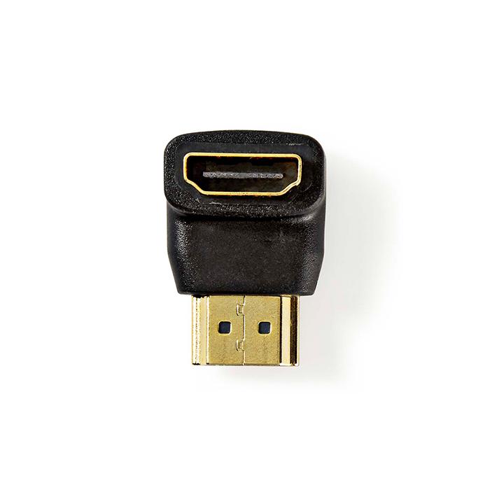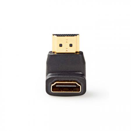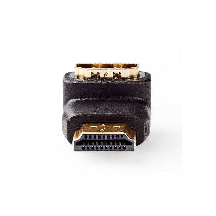 Αντάπτορας HDMI αρσ. - HDMI θηλ. υπό γωνία 90°, σε μαύρο χρώμα.