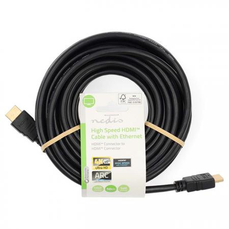 Καλώδιο High speed HDMI with Ethernet, HDMI αρσ. - HDMI αρσ., 10m.Το High speed HDMI with Ethernet καλώδιο της Nedis μπορεί να χειριστεί αναλύσεις βίντεο έως 4K@60Hz, συμπεριλαμβανομένων των προηγμένων τεχνολογιών προβολής όπως 3D και Deep Color.Το νεότερο καλώδιο High Speed HDMI με καινοτόμα χαρακτηριστικά, όπως:- Κανάλι HDMI High speed with Ethernet- 3D over HDMI- Υποστηρίζει: 4K, 3D, και Deep Color- Υποστηρίζει λειτουργίες ARC (Κανάλι επιστροφής ήχου), περιεχόμενο HDCP ή 3D σε Full HD- Ενσύρματη σύνδεση τηλεοράσεων και οθονών με κονσόλες παιχνιδιών όπως, π.χ. PlayStation ή το Xbox, καθώς και με beamers, προβολείς και δέκτες streaming π.χ. Amazon Fire TV ή Apple TV- Σύνδεση 1: HDMI αρσ.- Σύνδεση 2: HDMI αρσ.- Μήκος: 10.0 m- Διάμετρος: 6,5 mm- Εξωτερικό υλικό: PVC- Υλικό αγωγού: CCS- Μέγιστη ανάλυση: 4K@60Hz- Μέγιστος ρυθμός μεταφοράς δεδομένων: 18 Gbps- Πρότυπο ανάλυσης: 4K UHD- Υποστηριζόμενες αναλύσεις: 4K@60Hz, 720p, 1080p- Υποστηριζόμενη τεχνολογία: ARC, HDCP, Ethernet- Χρώμα: Μαύρο- Συσκευασία: Bulk