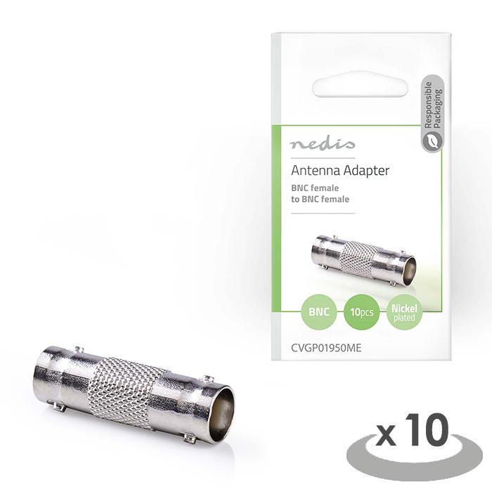 Μούφα BNC θηλ. - BNC θηλ., 10 τεμάχια.- Σύνδεση 1: BNC θηλ.- Σύνδεση 2: BNC θηλ.- Εξωτερικό υλικό: Μέταλλο- Σύνθετη αντίσταση: 50 Ohm- Επιμετάλλωση: Νικέλιο- Χρώμα: Ασημί- Συσκευασία: Papperbag with hook