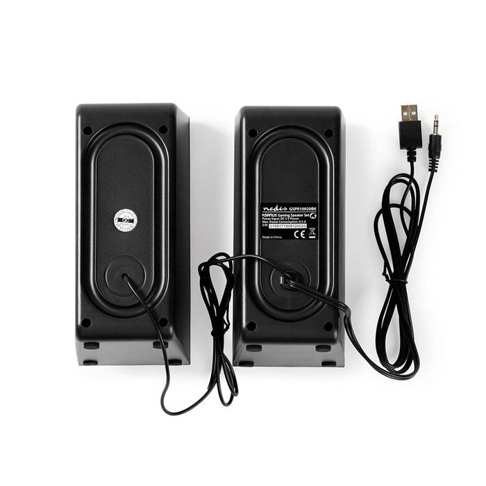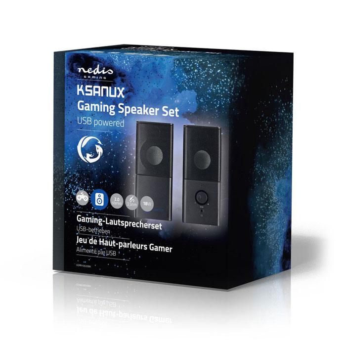 Στερεοφωνικά gaming ηχεία 2.0, 6W.Ζήστε στο έπακρο την εμπειρία gaming με τα στερεοφωνικά ηχεία της Nedis. Με τροφοδοσία USB και ισχύ RMS 2 x 3 W, απολαμβάνετε καθαρό και ποιοτικό ήχο όταν παίζετε τα αγαπημένα σας παιχνίδια.- Plug and play- Κατάλληλα για laptop, H/Y και άλλες συσκευές αναπαραγωγής ήχου- Compact design, ώστε δεν καταλαμβάνει πολύ χώρο σε ένα γραφείο- Ισχύς: 18W (2 x 9W)- RMS: 2 x 3W- Τροφοδοσία μέσω USB- Απόκριση συχνότητας: 200Hz-16kHz- Ρυθμιζόμενη ένταση ήχου- Σύνδεση: jack 3.5mm- Διαθέτει υποδοχή σύνδεσης ακουστικών- Χρώμα: Μαύρο- Μήκος καλωδίου USB: 1,2 m- Τροφοδοσία: USB 5V