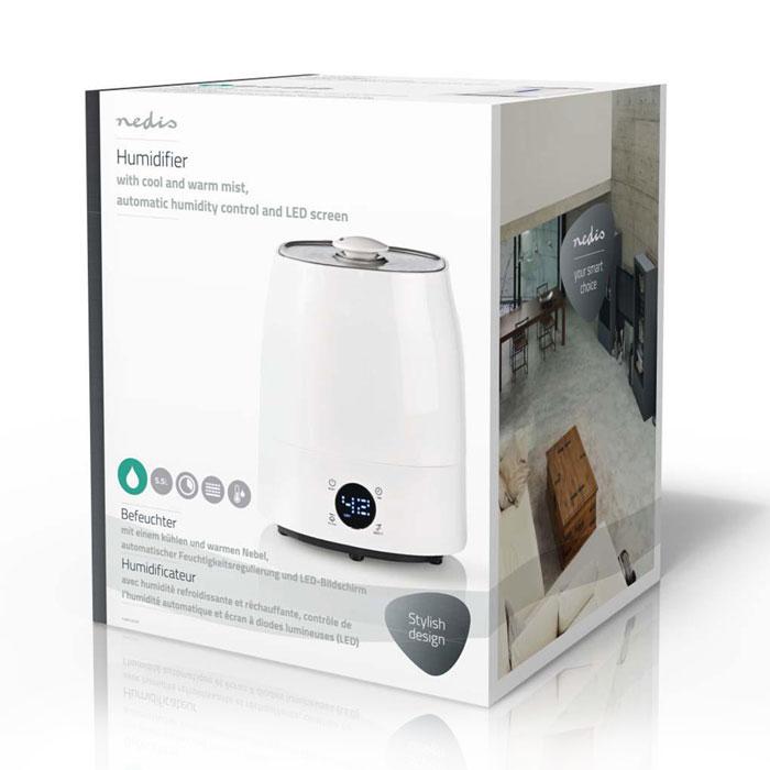 Yγραντήρας υπερήχων με δοχείο 5,5L, ψηφιακή οθόνη LED και πλήκτρα αφής. Ο αυτορρυθμιζόμενος υγραντήρας NEDIS, συμβάλει στη διατήρηση μιας υγιούς και σταθερής ατμόσφαιρας στο χώρο σας. Διαθέτει ηλεκτρονικό έλεγχο για την ρύθμιση του ποσοστού υγρασίας στον χώρο σας και ψηφιακή οθόνη με πλήκτρα αφής. Η ψηφιακή οθόνη LED δείχνει ακριβώς τα επίπεδα υγρασίας που υπάρχουν στο χώρο σας και μπορεί να χρησιμοποιηθεί για να προγραμματίσετε τις ρυθμίσεις του σύμφωνα με τις προτιμήσεις σας. Επιπλέον, ο χρονοδιακόπτης 12h σας επιτρέπει να ρυθμίσετε αυτόματη απενεργοποίηση μετά από επιλεγμένο χρονικό διάστημα. Ένα κεραμικό φίλτρο είναι εγκατεστημένο στην αποσπώμενη μεγάλη δεξαμενή 5,5L, ώστε να καθαρίζει το νερό. Τέλος, διαθέτει αυτόματη απενεργοποίηση όταν η δεξαμενή είναι άδεια ή όταν έχει αφαιρεθεί από τη βάση της.Τεχνικά Χαρακτηριστικά:- Δοχείο νερού: 5,5L (αποσπώμενο) - Τεχνολογία υπερήχων για την βελτίωση της ποιότητας του αέρα- Διεθέτει θερμαντικό στοιχείο για να δοατηρεί ζεστό το νερό στο δοχείο- Ψηφιακή οθόνη με πλήκτρα αφής - Ένδειξη υγρασίας περιβάλλοντα χώρου - Ένδειξη της τιμής επιθυμητής υγρασίας που έχετε ορίσει- Αυτόματη ενεργοποίηση, ώστε να διατηρείται ο χώρος σας σε επιθυμητό επίπεδο- Αυτόματη απενεργοποίηση όταν η δεξαμενή είναι άδεια - Χρονοδιακόπτης 12h για αυτόματη απενεργοποίηση - Τροφοδοσία: Euro/Τύπος C (CEE 7/16)- Υλικό: Πλαστικό- Χρώμα: Λευκό/Γκρι- Θόρυβος: <35dB(A)- Ισχύς: 110W