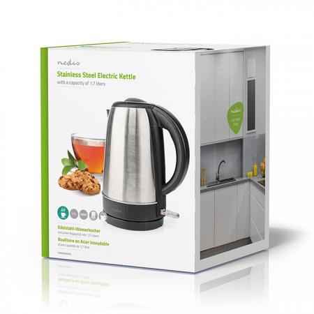Ανοξείδωτος βραστήρας 1.7L, 2200W.- Κρυφό θερμαντικό στοιχείο που αποτρέπει τη δημιουργία αλάτων στην αντίσταση- Μέγιστη χωρητικότητα 1.7L- Κομψή και ανθεκτική κατασκευή με φινίρισμα από ανοξείδωτο ατσάλι- Απλός και εύκολος χειρισμός της κανάτας με το ένα χέρι- Ελεύθερη περιστροφή κανάτας 360° πάνω στη βάση- Κανάτα χωρίς καλώδιο για εύκολη και άνετη χρήση- Αυτόματη απενεργοποίηση μετά το βρασμό- Μήκος καλωδίου: 0,70 m- Διακόπτης on/off με ενδεικτική λυχνία λειτουργίας- Έξυπνο τύλιγμα καλωδίου στη βάση για εξοικονόμηση χώρου κατά την αποθήκευση- Προστασία Boil-Dry, ώστε να αποφευχθεί η ενεργοποίηση χωρίς νερό- Αντιολισθητικά ποδαράκια, για μέγιστη ασφάλεια- Υψηλής ποιότητας ελεγκτής STRIX- Τροφοδοσία: 220-240 V, 50/60 Hz- Ισχύς: 2200W- Χρώμα: Μαύρο/ΑσημίΗ συσκευή είναι σχεδιασμένη αποκλειστικά για ιδιωτική χρήση και για συγκεκριμένους σκοπούς. Δεν είναι σχεδιασμένη για διαφημιστική και επαγγελματική χρήση.