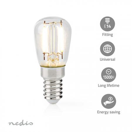 Λαμπτήρας ψυγείου LED 2W E14.Χαρακτηριστικά:- Φωτεινότητα: 150lm- Ονομαστική τάση: 220-240V, 50/60 Hz- Ντουί λαμπτήρα: Ε14- Στυλ λάμπας: T26- Ισχύς: 2W- Ισχύς ισοδύναμου: 16W- Ενεργειακή κλάση: G- Ονομαστική διάρκεια ζωής: 15000 h- Κατανάλωση ενέργειας ανά 1000 ώρες: 2kWh- Θερμοκρασία χρώματος: 2700 K- Υλικό: Γυαλί
