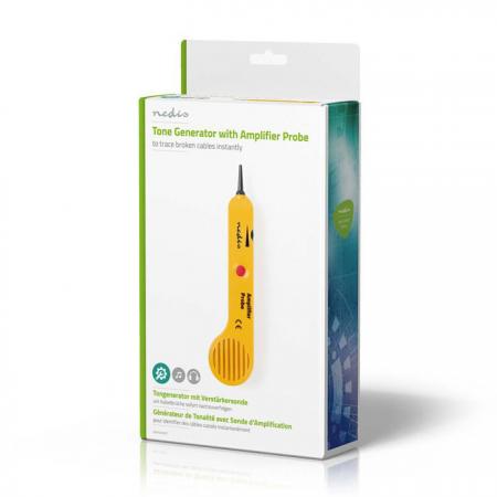 Γεννήτρια τόνων με ανιχνευτή. - Ο ανιχνευτής έχει σχεδιαστεί για να εντοπίζει και να αναγνωρίζει καλώδια χωρίς να καταστρέφεται η μόνωση τους - Λειτουργεί με οποιαδήποτε γεννήτρια τόνων για τον εντοπισμό καλωδίων - Έλεγχος έντασης και ρύθμιση ευαισθησίας ώστε να ταιριάζει και να προσαρμόζεται στις κατάλληλες συνθήκες εργασίας - Κουμπί On/Off αποτρέπει εξάντληση της μπαταρίας - Τροφοδοσία με μπαταρία 9V - μεγάλη διάρκεια ζωής (περίπου 100 ώρες χρήσης) - Ειδική σύνδεση για χρήση με ακουστικά - Περιλαμβάνονται και κόκκινή - μαύρη δοκιμαστική ακίδα - Διακόπτης 3 θέσεων που ελέγχει τους τρόπους λειτουργίας καθώς και LED 3 χρωμάτων για τον έλεγχο πολικότητας, συνεχόμενης λειτουργίας και τάσης - Διακόπτης επιλογής τόνων, για την επιλογή είτε στερεού τόνου ή διπλού εναλλασσόμενου τόνου (ΠΡΟΣΟΧΗ: Δεν πρέπει να συνδεθεί σε ένα ενεργό κύκλωμα εναλλασσόμενου ρεύματος άνω των 24V σε αυτή την κατάσταση)Περιεχόμενα συσκευασίας:- 1x Ενισχυτής ανίχνευσης- 1x Γεννήτρια τόνων- 2x Μπαταρία 9V- 1x Τσάντα αποθήκευσης- 1x Εγχειρίδιο οδηγιών