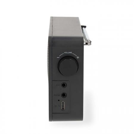 Φορητό, επαναφορτιζόμενο και ψηφιακό ραδιόφωνο FM με οθόνη LCD, σε μαύρο χρώμα.Το φορητό και ψηφιακό ραδιόφωνο της Nedis συνδυάζει την κλασική εμπειρία του FM ραδιοφώνου με τη σύγχρονη τεχνολογία Bluetooth, προσφέροντας έναν ολοκληρωμένο τρόπο να απολαμβάνετε μουσική όπου κι αν βρίσκεστε. Ιδανικό για χρήση στο σπίτι, στο γραφείο ή εν κινήσει, αυτό το μικρό και κομψό ραδιόφωνο σχεδιάστηκε για να καλύψει όλες τις ανάγκες σας σε ήχο και συνδεσιμότητα. Η ενσωματωμένη τεχνολογία Bluetooth επιτρέπει την ασύρματη μετάδοση μουσικής από το smartphone, το tablet ή άλλες συμβατές συσκευές. Με αυτόν τον τρόπο, απολαμβάνετε τις αγαπημένες σας λίστες αναπαραγωγής χωρίς την ταλαιπωρία των καλωδίων. Το ραδιόφωνο υποστηρίζει τη λήψη FM σταθμών και προσφέρει τη δυνατότητα αποθήκευσης έως και 20 σταθμών, είτε αυτόματα είτε χειροκίνητα. Επιπλέον, τα δύο πλήκτρα προεπιλογής επιταχύνουν την πρόσβαση στους αγαπημένους σας σταθμούς. Η οθόνη LCD προσφέρει υψηλή αναγνωσιμότητα ακόμα και σε συνθήκες χαμηλού φωτισμού, χάρη στο αρνητικό φόντο της. Το ενσωματωμένο ρολόι 24 ωρών και τα δύο επίπεδα φωτεινότητας δίνουν την ευκαιρία για προσαρμογή ανάλογα με το περιβάλλον και τις προτιμήσεις σας. Η ενσωματωμένη μπαταρία Li-Ion 1900 mAh εξασφαλίζει έως 10 ώρες συνεχούς αναπαραγωγής, ενώ η θύρα USB-C επιτρέπει γρήγορη και εύκολη φόρτιση, ώστε να μη μείνετε ποτέ χωρίς μουσική. Τέλος, για όσους προτιμούν ενσύρματη σύνδεση, το ραδιόφωνο διαθέτει είσοδο 3.5 mm AUX για σύνδεση με εξωτερικές πηγές ήχου και υποδοχή ακουστικών για ιδιωτική ακρόαση.Χαρακτηριστικά:- Συμπαγής και φορητός σχεδιασμός- Εύκολο στη χρήση- Ραδιόφωνο PLL FM- Ασύρματη σύνδεση Bluetooth για εύκολη αναπαραγωγή από το κινητό ή tablet σας- Band: FM- Εύρος συχνοτήτων FM: 87,5 – 108 MHz- RMS: 1W- Υποδοχή ακουστικών (jack 3,5mm)- Διαθέτει έναν αναλογικό διακόπτη ρύθμισης της έντασης ήχου- Διαθέτει ενσωματωμένη επαναφορτιζόμενη Li-Ion μπαταρία 1900mAh, με διάρκεια λειτουργίας έως και 10 ώρες συνεχόμενα- Πλήκτρα ON / OFF και επιλογής μπάντας συχνότητας- Διαθέτει 2 κουμπιά προεπιλογής ραδιοφωνικών σταθμός στο μπροστινό μέρος- Αποθήκευση έως 20 σταθμών ραδιοφώνου- Ευδιάκριτη LCD οθόνη 1.77", με αρνητικό φόντο για καθαρή προβολή της ώρας και των σταθμών- Διαθέτει 2 επίπεδα ρύθμισης της φωτεινότητας της οθόνης- Ρολόι για εμφάνιση της τρέχουσας ώρας στην οθόνη σε μορφή 24-ωρών- Τηλεσκοπική κεραία, για βελτιωμένη λήψη σήματος FM- Φόρτιση μέσω θύρας USB-C- Υποστηριζόμενη ασύρματη τεχνολογία: Bluetooth- Αριθμός καναλιών ήχου: Μονοφωνικό 1.0- Συμπεριλαμβάνεται καλώδιο USB-C σε USB-A, μήκους 1.50m για την φόρτιση της ενσωματωμένης μπαταρίας- Συνδέσεις εισόδου: USB-C, 3.5 mm, AUX in 3.5mm- Έκδοση Bluetooth: 5.3- Κατανάλωση ενέργειας: 3.5W (κατάσταση λειτουργίας), 0.4W (κατάσταση αναμονής)- Συνολική ισχύς: 2W- Λειτουργία με επαναφορτιζόμενη μπαταρία 1900mAh ή μέσω καλωδίου USB (συμπεριλαμβάνεται)- Χρόνος φόρτισης: 3.5 ώρες- Τάση εισόδου: 5 VDC- Ρεύμα εισόδου: 1.0 A- Εύρος συχνοτήτων μετάδοσης: 2400 - 2483.5 MHz- Μέγιστο κέρδος κεραίας εκπομπής: -0.58 dBi- Μέγιστη ισχύς μετάδοσης ραδιοσυχνοτήτων: 4 dBm- Διαστάσεις συσκευής: 160 x 90 x 44 mm- Υλικό: ABS- Χρώμα: ΜαύροΠεριεχόμενα συσκευασίας:- 1x Φορητό ραδιόφωνο FM- Καλώδιο φόρτισης USB type-C- Εγχειρίδιο οδηγιών